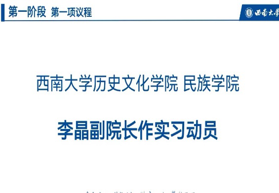 2023年1月4日下午,学院线上召开了2020级历史学(师范)专业教育综合实习动员暨培训大会。学院党委副书记张静、学院副院长李晶、教师教育学院及我院指导教师曹华清、袁从秀、谢欧、范敏、杜林泽以及学院2020级全体师范生参加本次大会。大会由2020级本科生辅导员李蓉若主持。为更好开展本次实习培训,学校教师教育学院特别邀请重庆市兼善中学副校长冉崇娟、西南大学附属中学校教师赵敏岩为我院2020级师范生开展教育实习专项培训。