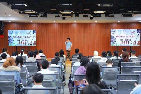 《心中的鼓声》用多民族语言,将盲少年阿普的勇敢传说讲得生动;《千里万里》《金杯》的纯净歌声,从高原传到草原,真挚祝福在礼堂回响;尤克里里弹唱《和你一样》,情感真挚地合唱让笑容在彼此脸上绽放;《我曾梦想》唱出了哈萨克少年的壮志凌云,所有同学用双手打起节拍,奋进的信念感染全场。