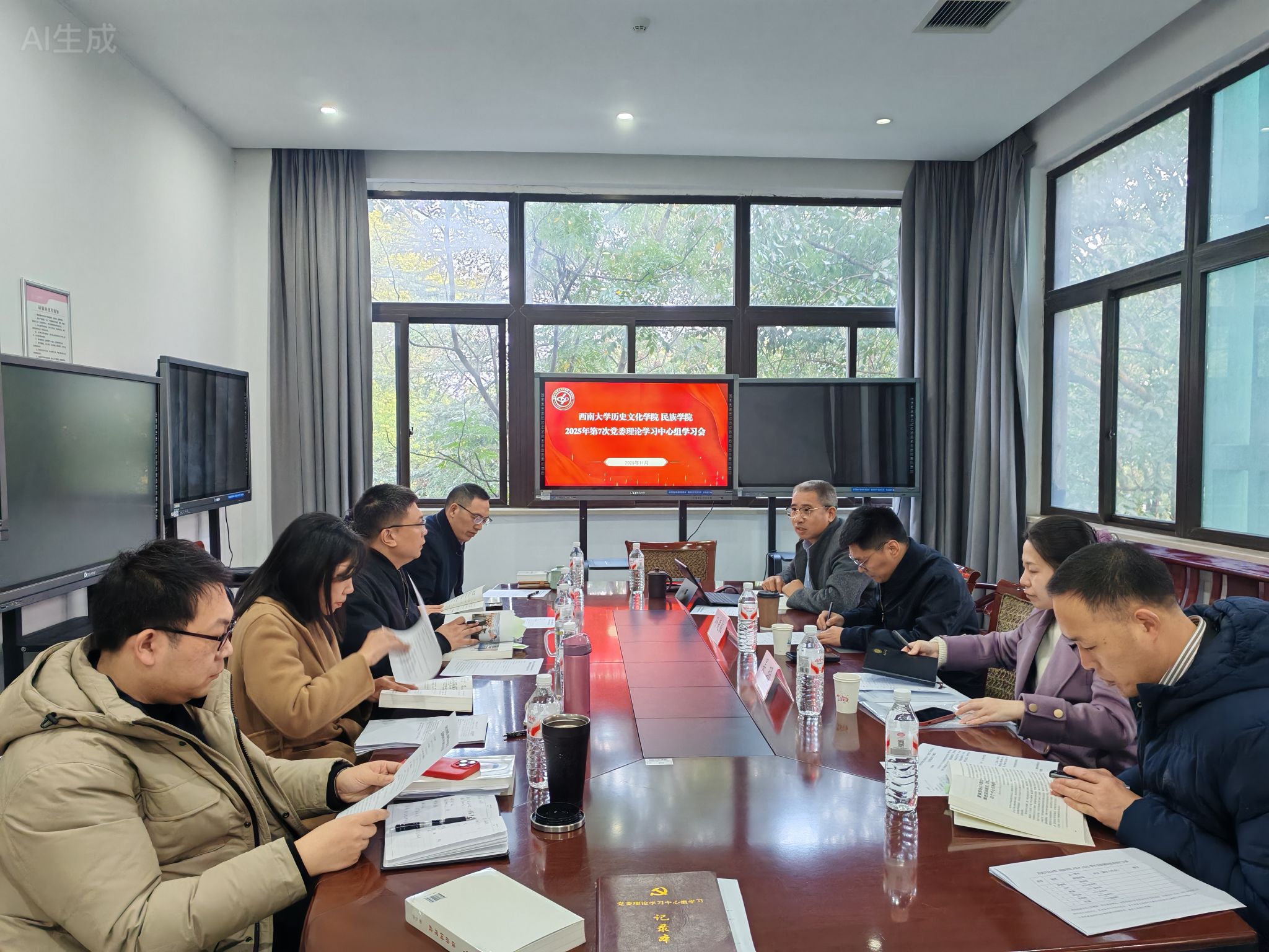 11月21日上午,历史文化学院 民族学院党委召开2025年第7次党委理论学习中心组学习会,专题学习《习近平谈治国理政》(第五卷)有关内容。会议由学院党委书记罗庆昌主持,两委委员参加会议。学校党委常委、党委宣传部、党委网络工作部部长,发展规划与学科建设部部长、学术委员会办公室主任孙楚航出席学习会。