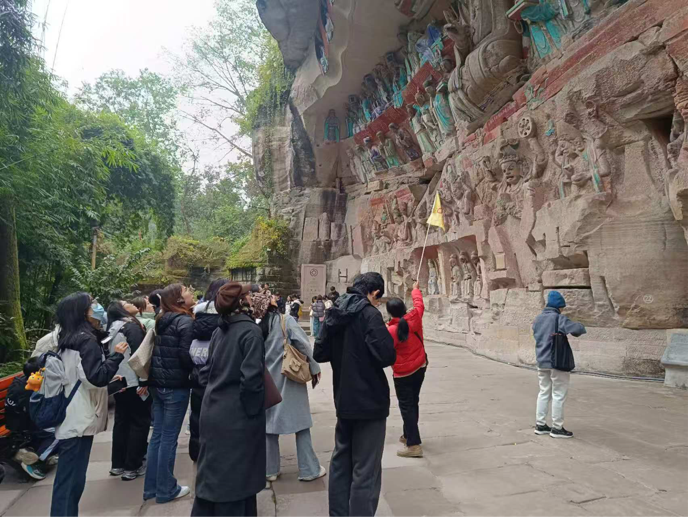 本次研学紧密结合学院专业特色,推动课堂教学与实践体验深度融合,让同学们在大足石刻“行走的课堂”中深化了对文化遗产的理解。同学们在沉浸式的实地观摩与现场讲解中,不仅对石窟艺术形式与风格流变获得了更为直观立体的认知,更进一步理解了文化遗产作为历史见证与精神载体的双重价值,从而提升了主动传承与弘扬中华优秀传统文化的自觉意识。