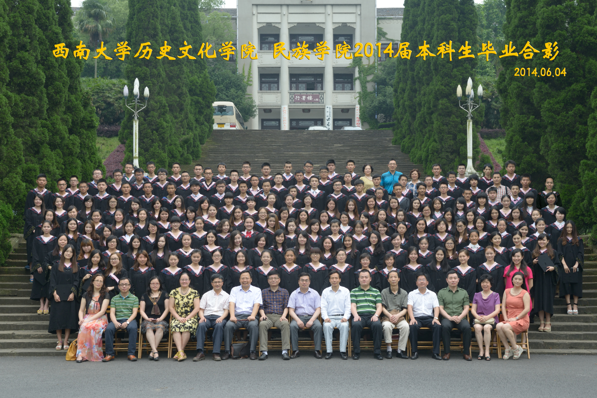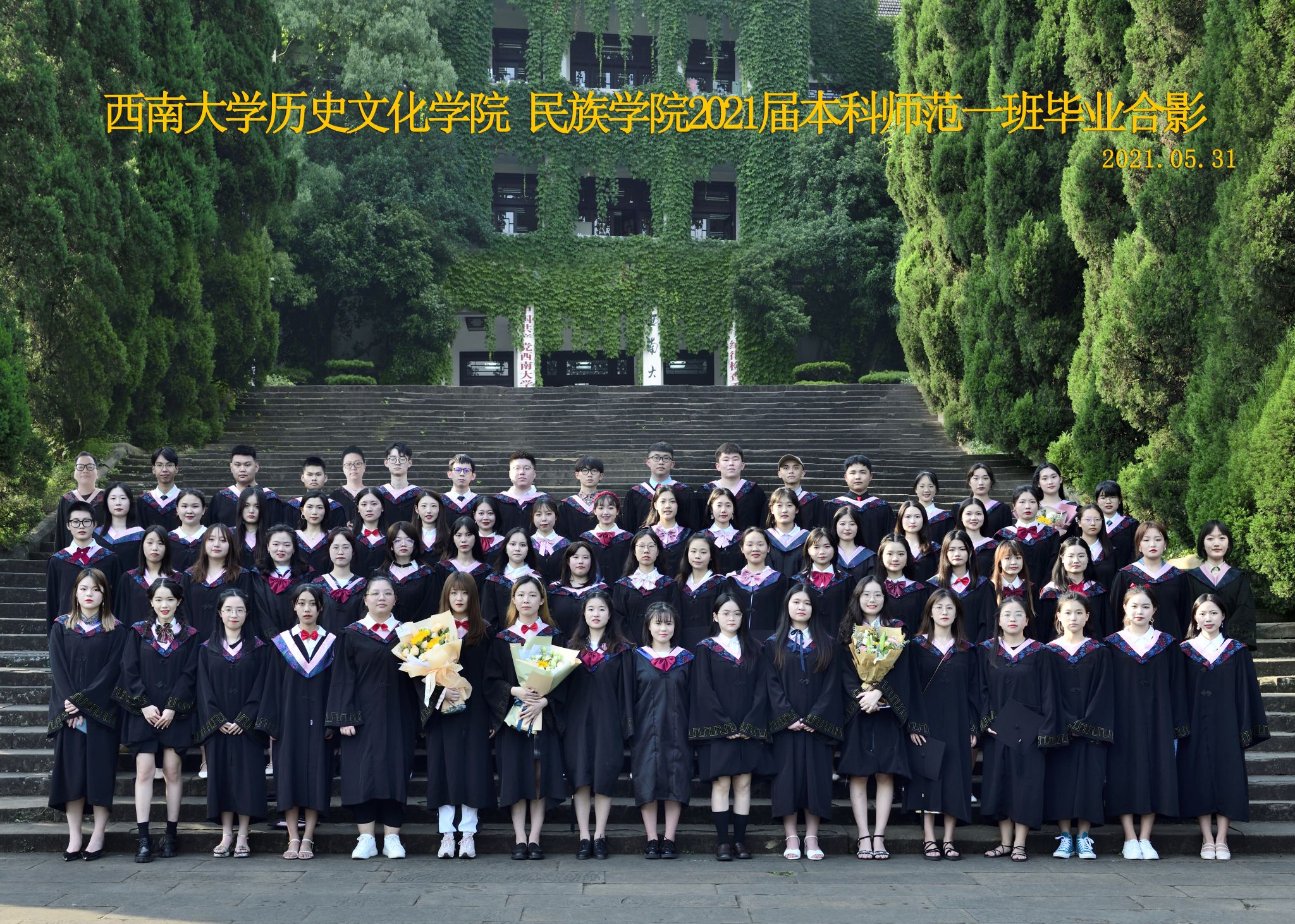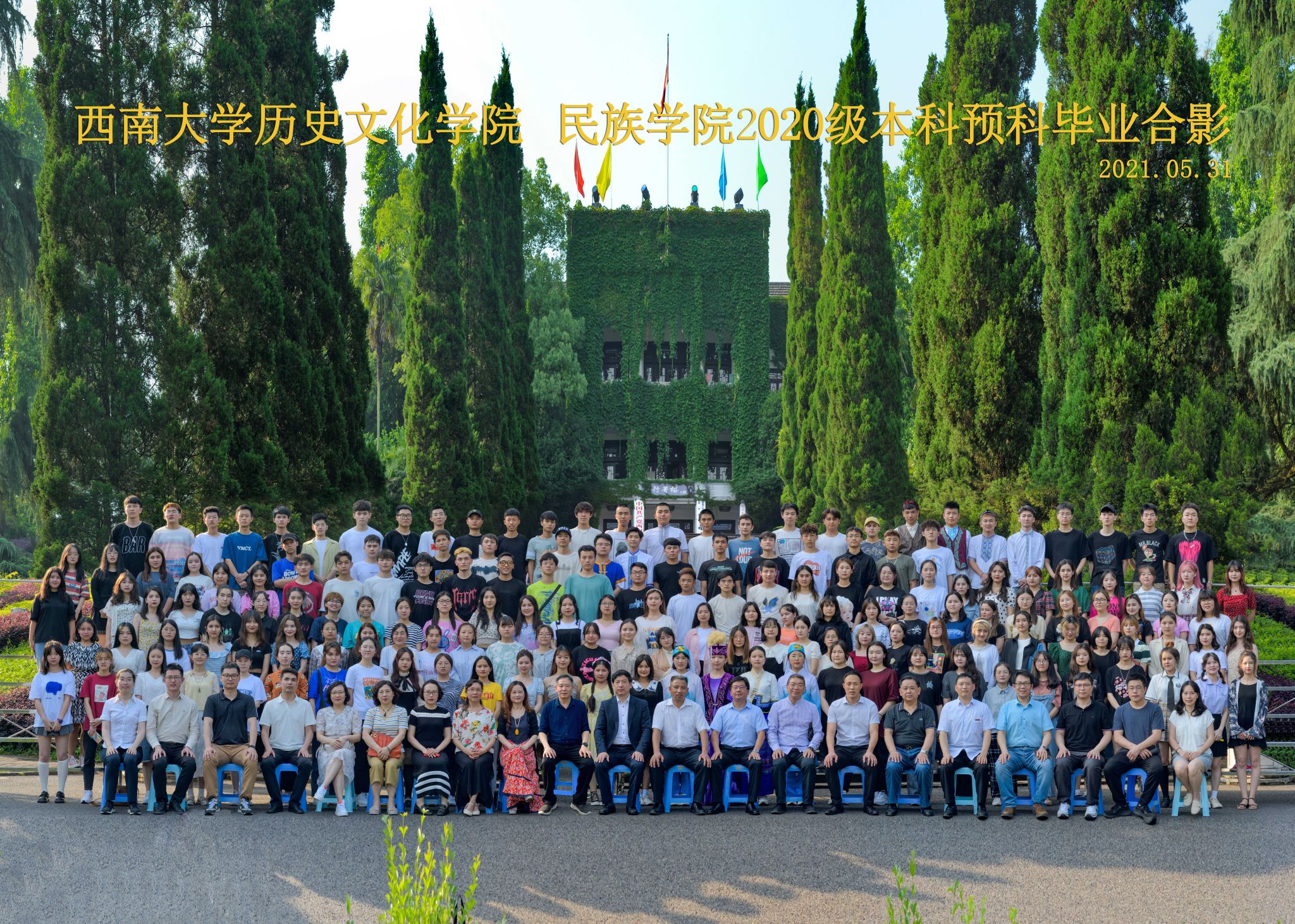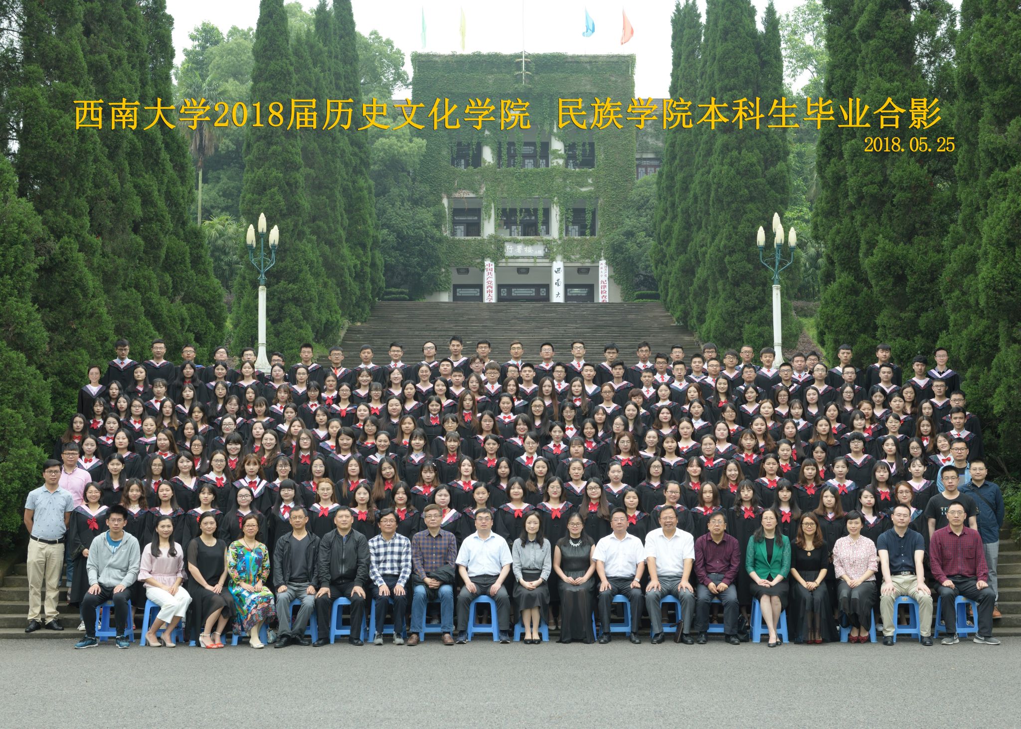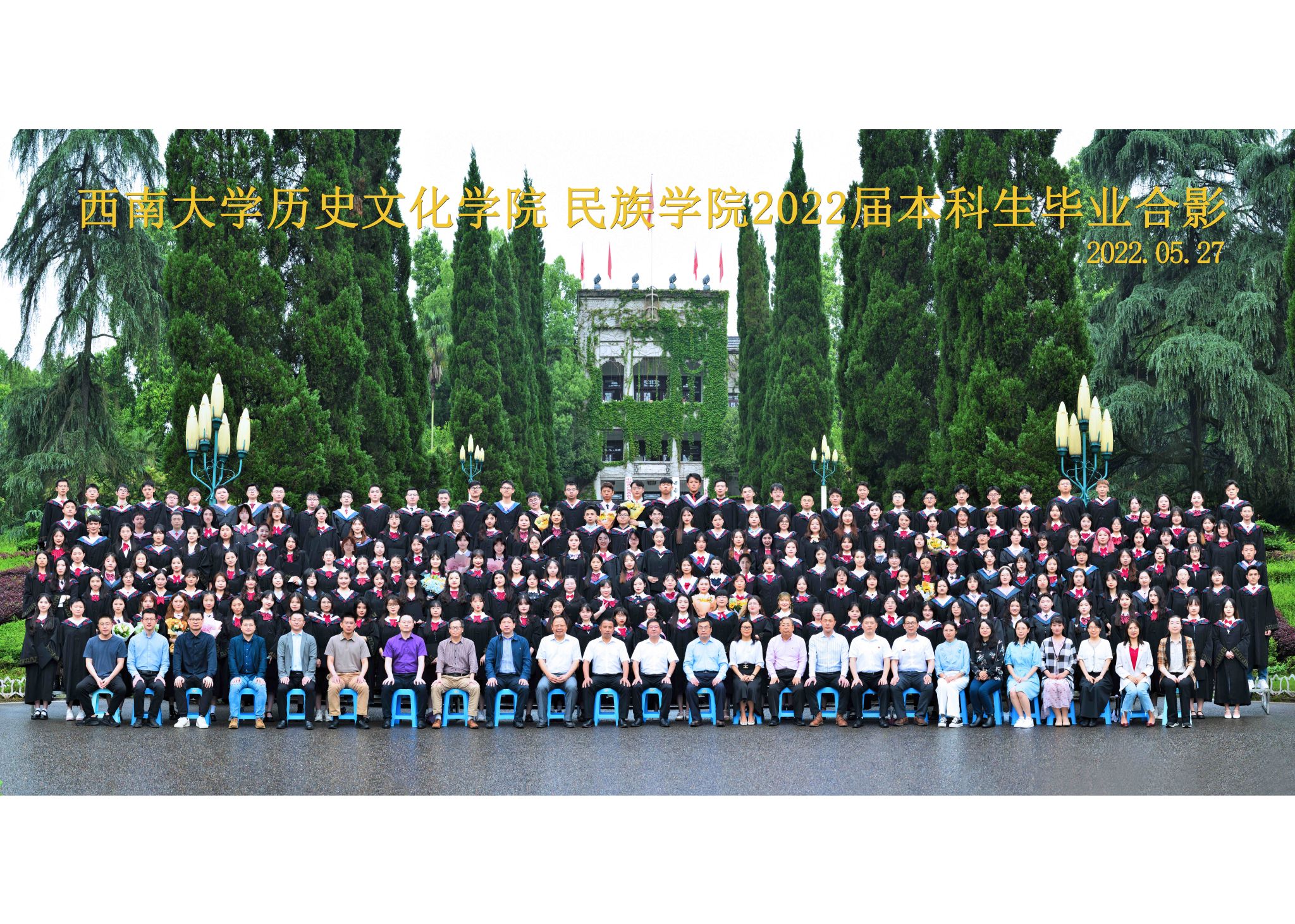 维我西大,滋兰育蕙,弘文兴农,英才济济,拔萃黉宫。含弘光大,学高足以传师道;继往开来,德厚自堪擎苍穹。母院兴教,身先其任:民族预科与民族学,功建中华民族共同体;历史教育与历史学,传承师道中华文明齐兴盛。传统史学,积淀深厚,蔚为大观;专业素养,与时俱进,新枝竞秀。长江文化研究,弘扬中华文明传统,后势可喜;中希文明互鉴,践履民族复兴伟业,前景光明。