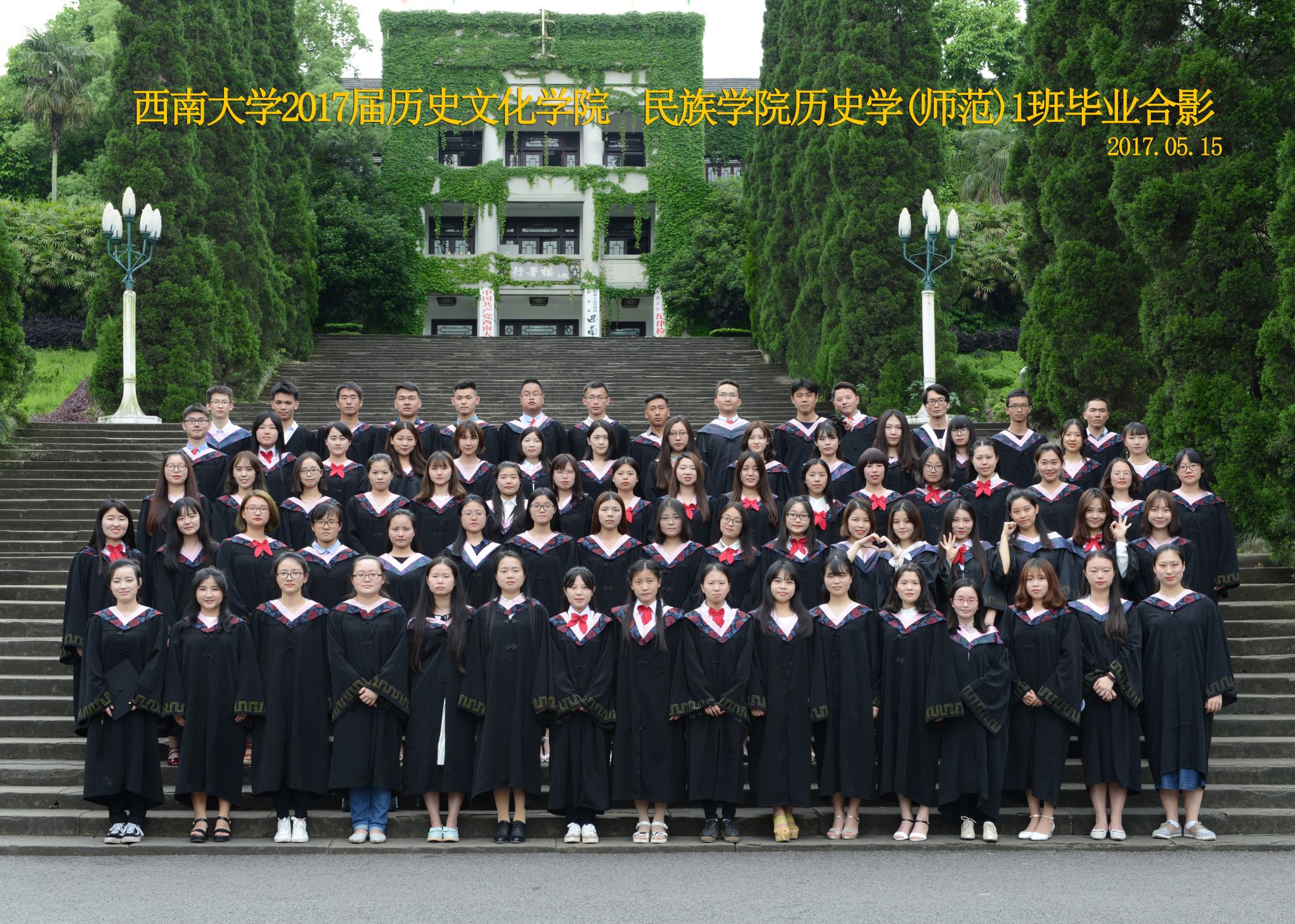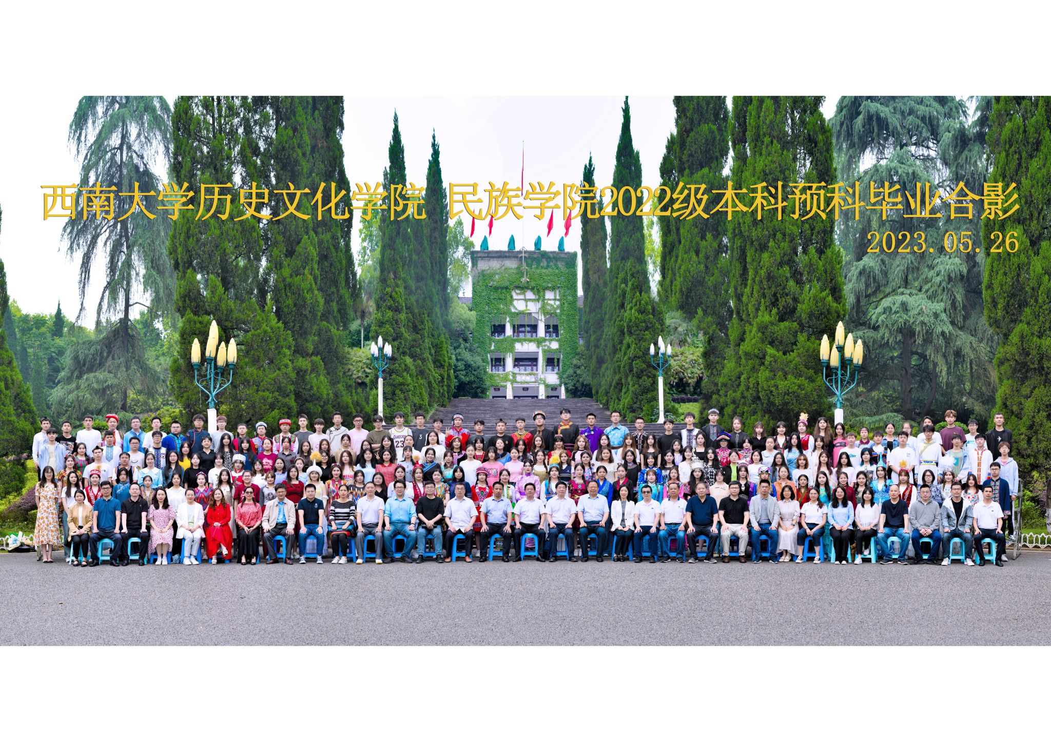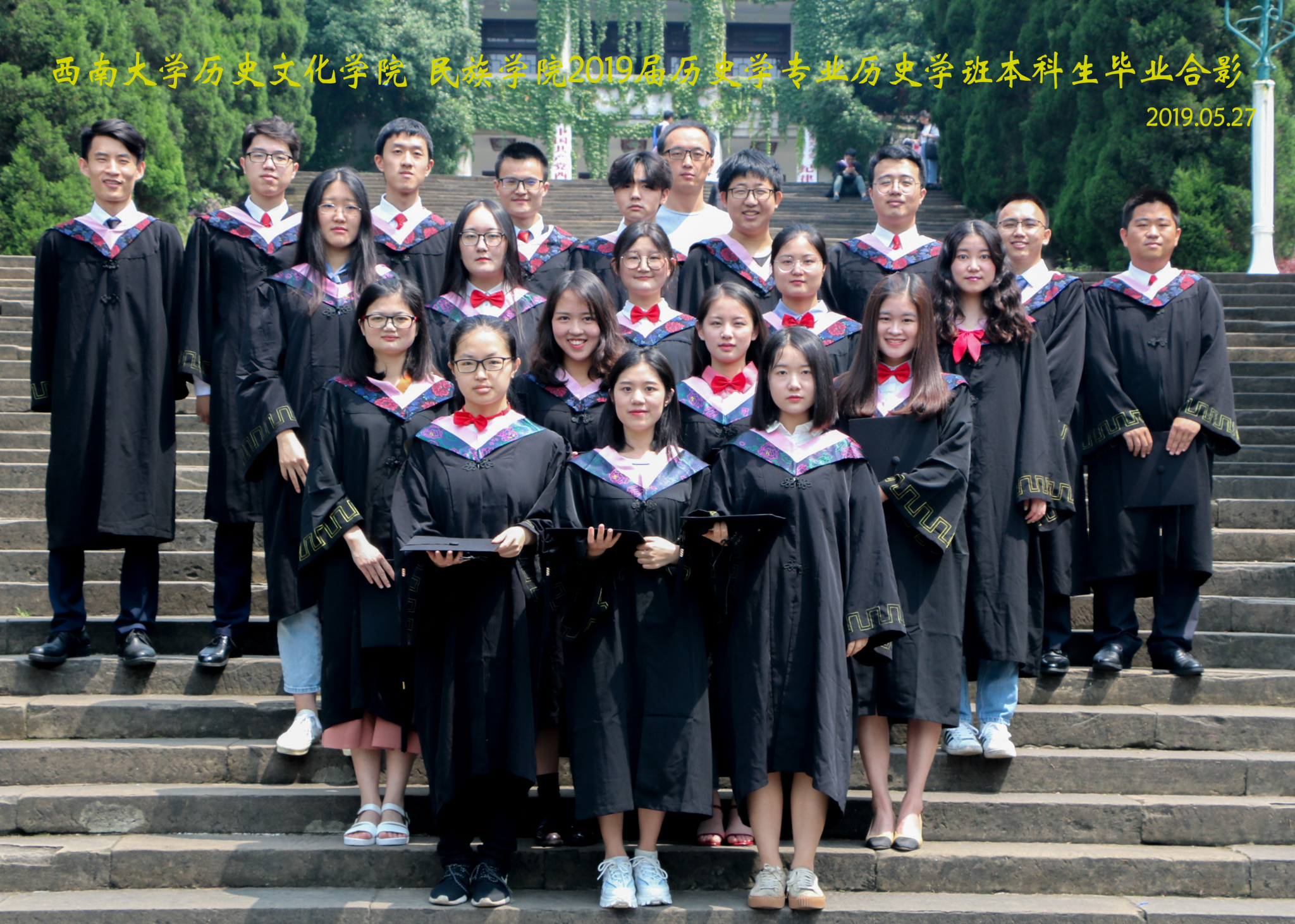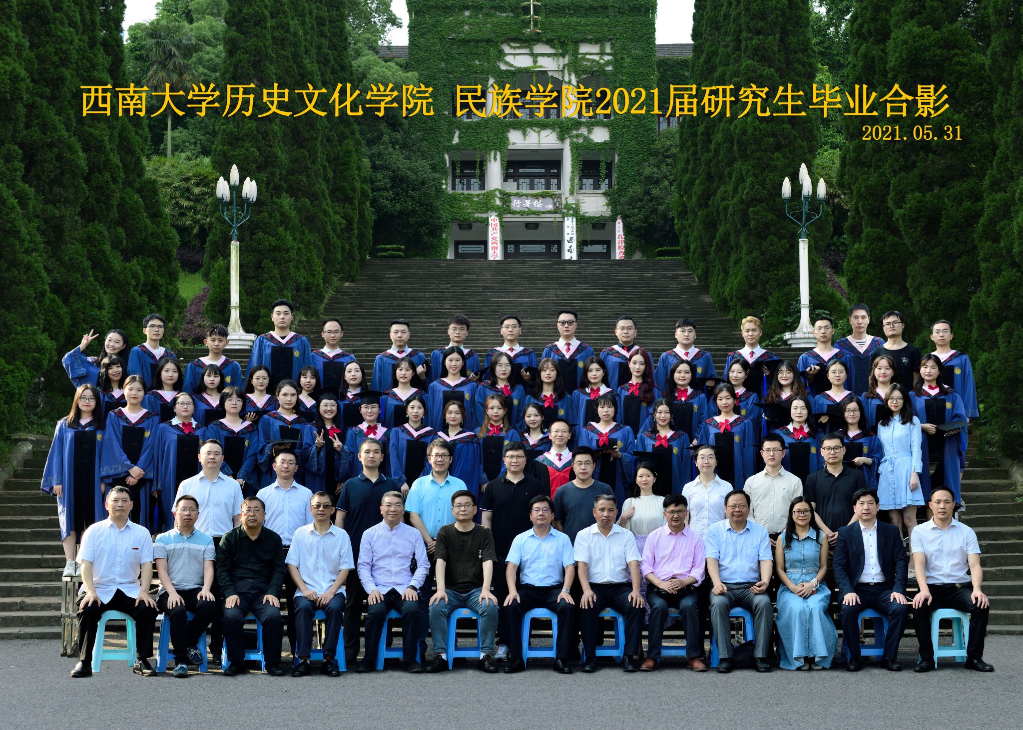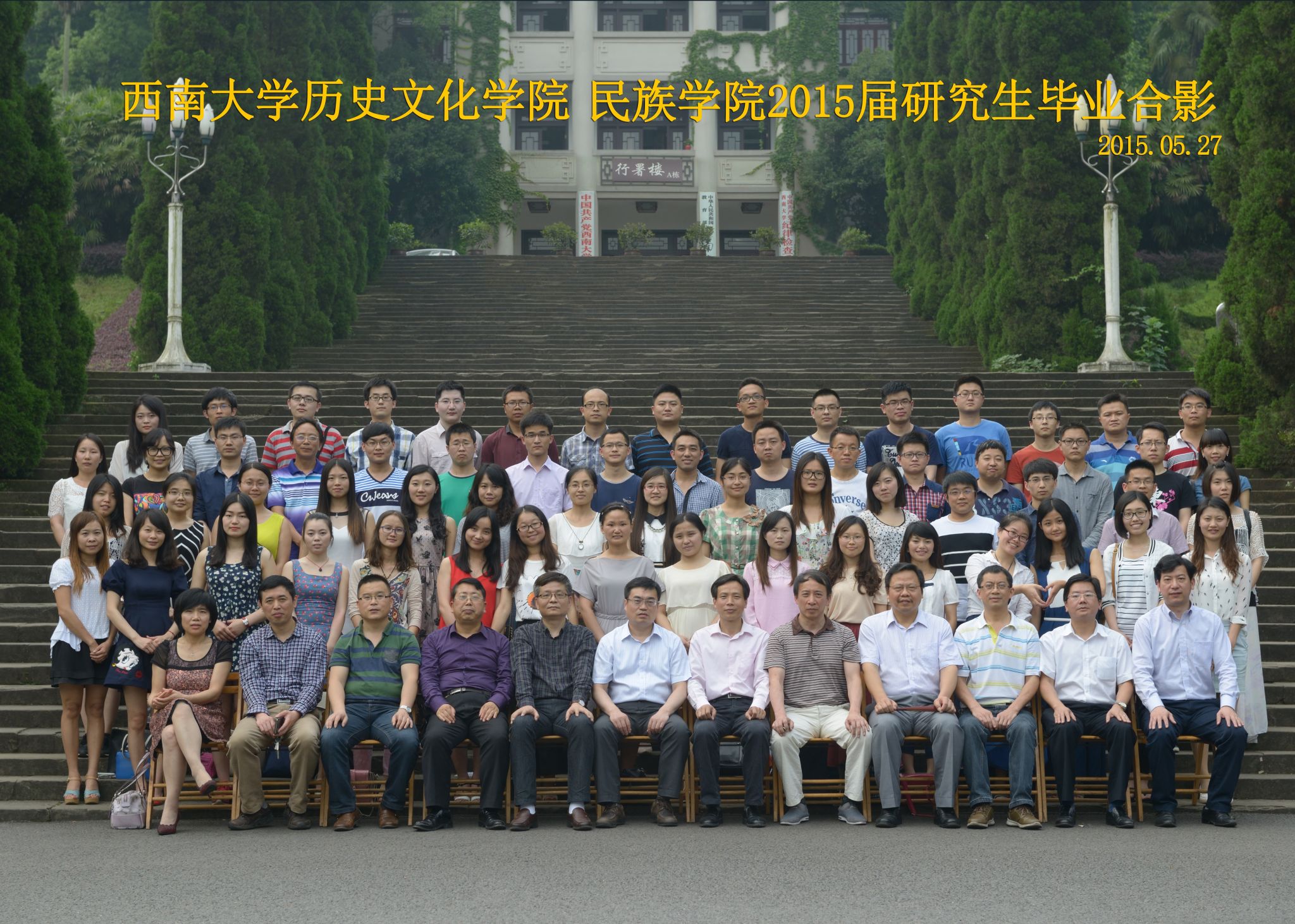 维我西大,滋兰育蕙,弘文兴农,英才济济,拔萃黉宫。含弘光大,学高足以传师道;继往开来,德厚自堪擎苍穹。母院兴教,身先其任:民族预科与民族学,功建中华民族共同体;历史教育与历史学,传承师道中华文明齐兴盛。传统史学,积淀深厚,蔚为大观;专业素养,与时俱进,新枝竞秀。长江文化研究,弘扬中华文明传统,后势可喜;中希文明互鉴,践履民族复兴伟业,前景光明。