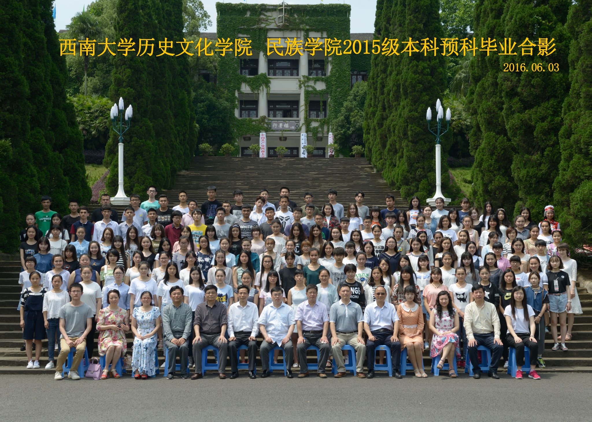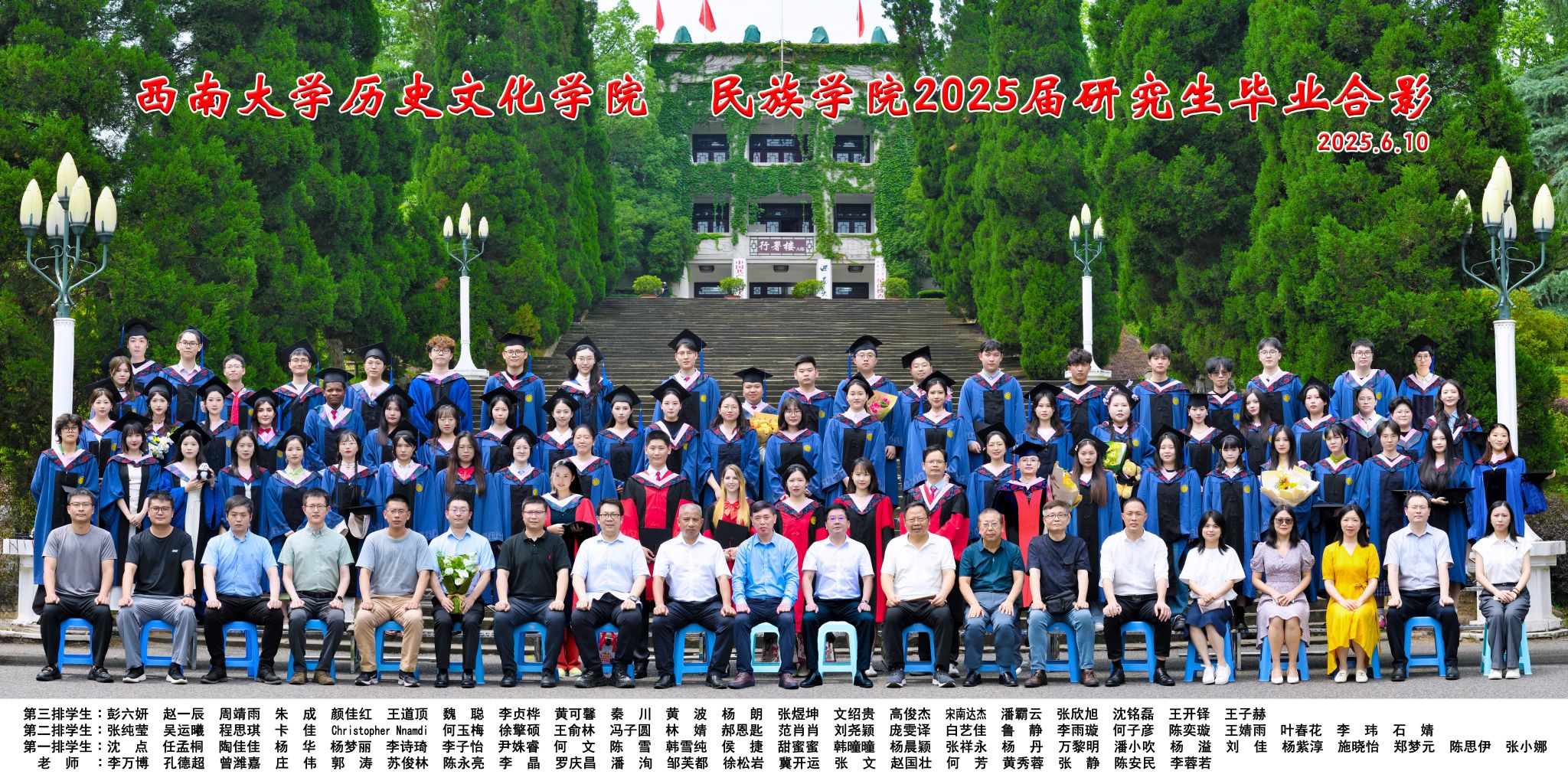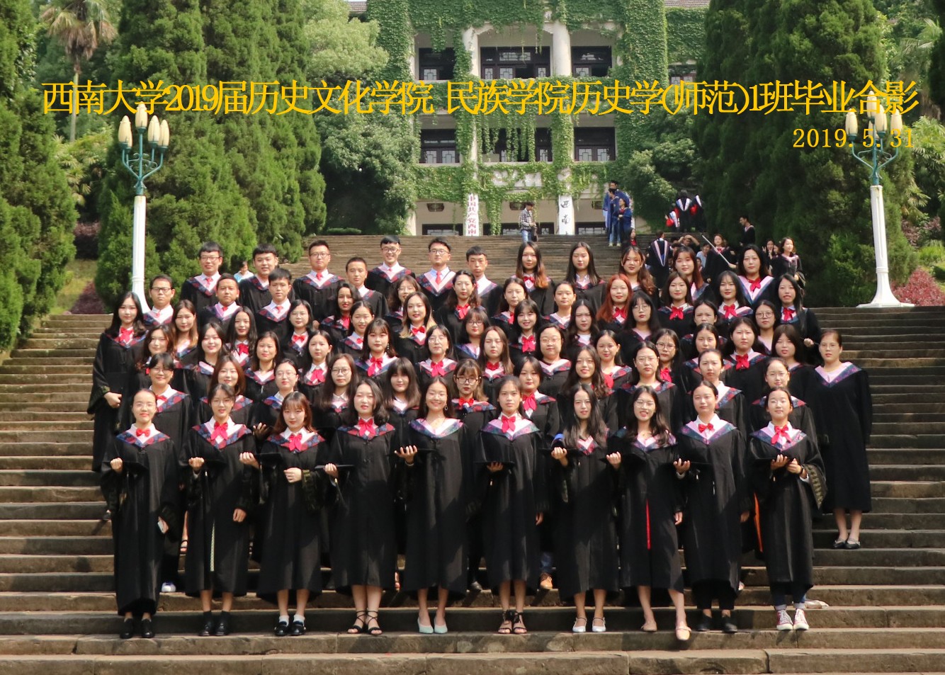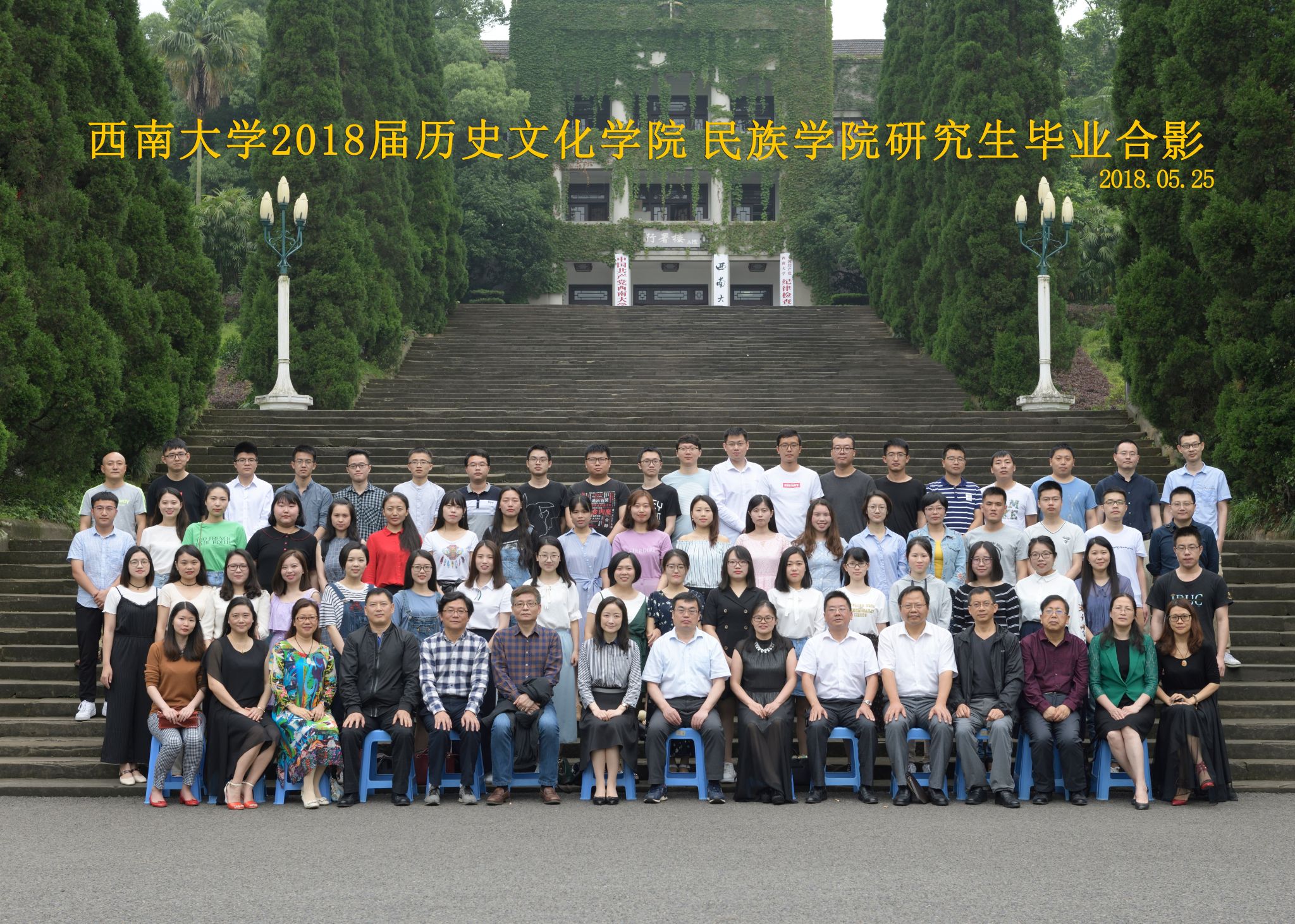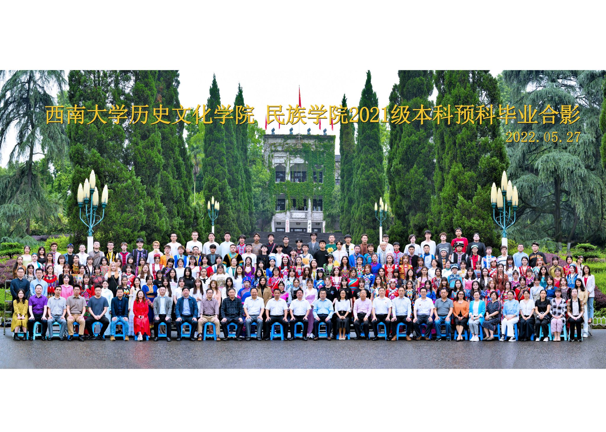 维我西大,滋兰育蕙,弘文兴农,英才济济,拔萃黉宫。含弘光大,学高足以传师道;继往开来,德厚自堪擎苍穹。母院兴教,身先其任:民族预科与民族学,功建中华民族共同体;历史教育与历史学,传承师道中华文明齐兴盛。传统史学,积淀深厚,蔚为大观;专业素养,与时俱进,新枝竞秀。长江文化研究,弘扬中华文明传统,后势可喜;中希文明互鉴,践履民族复兴伟业,前景光明。