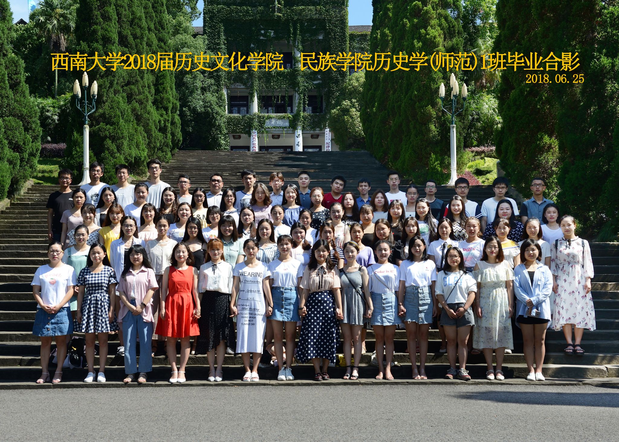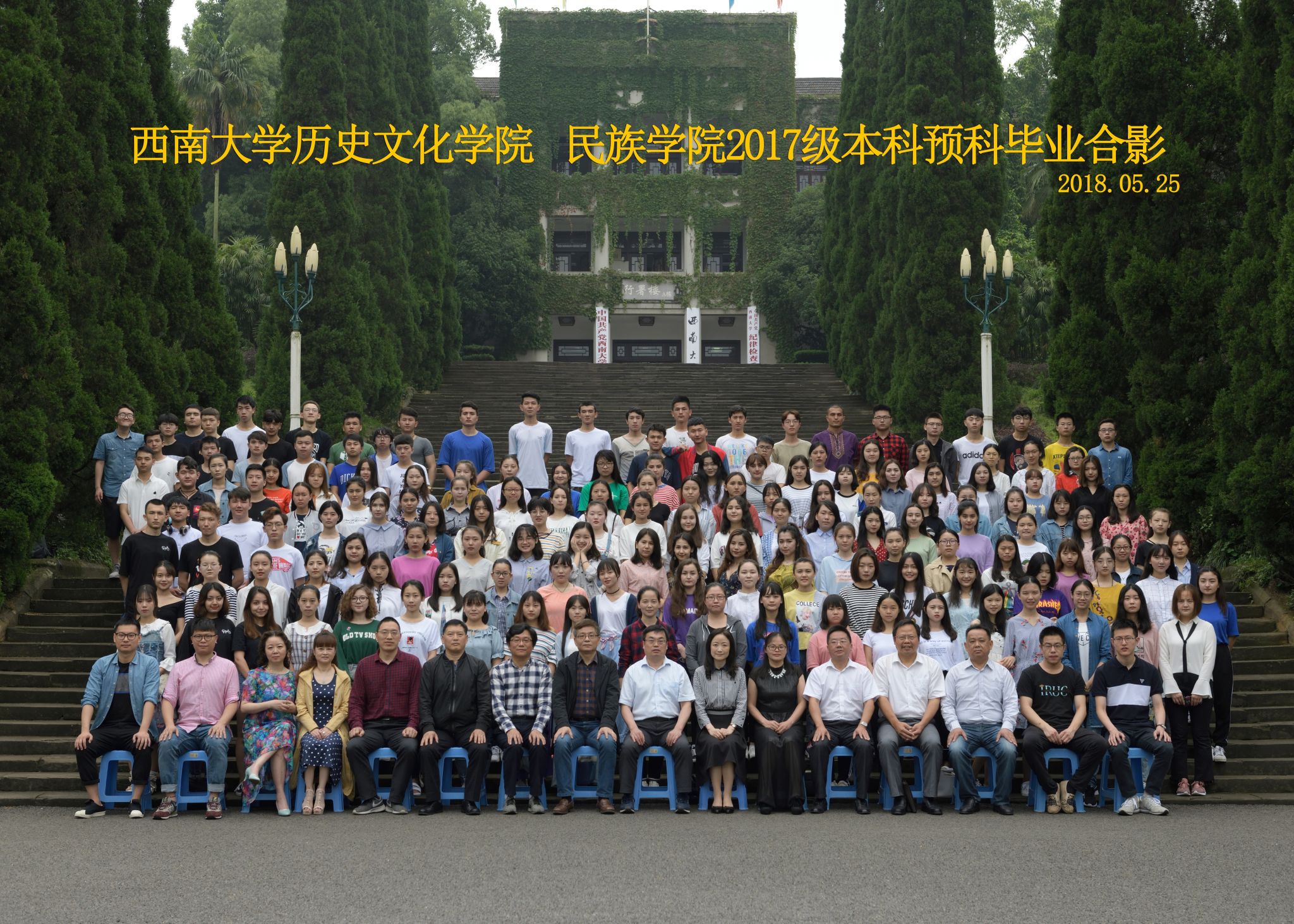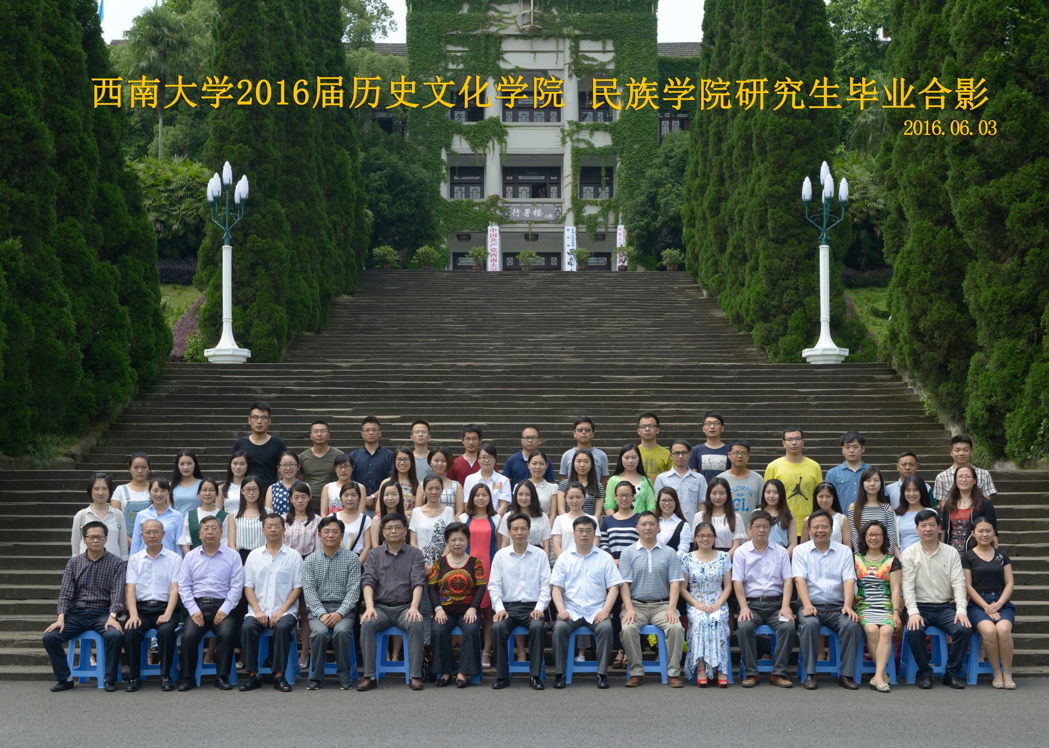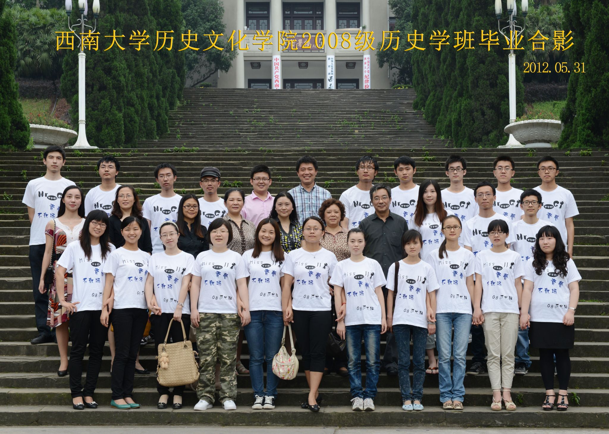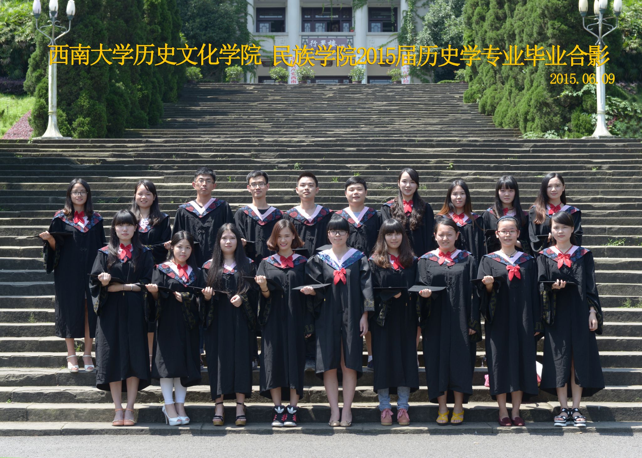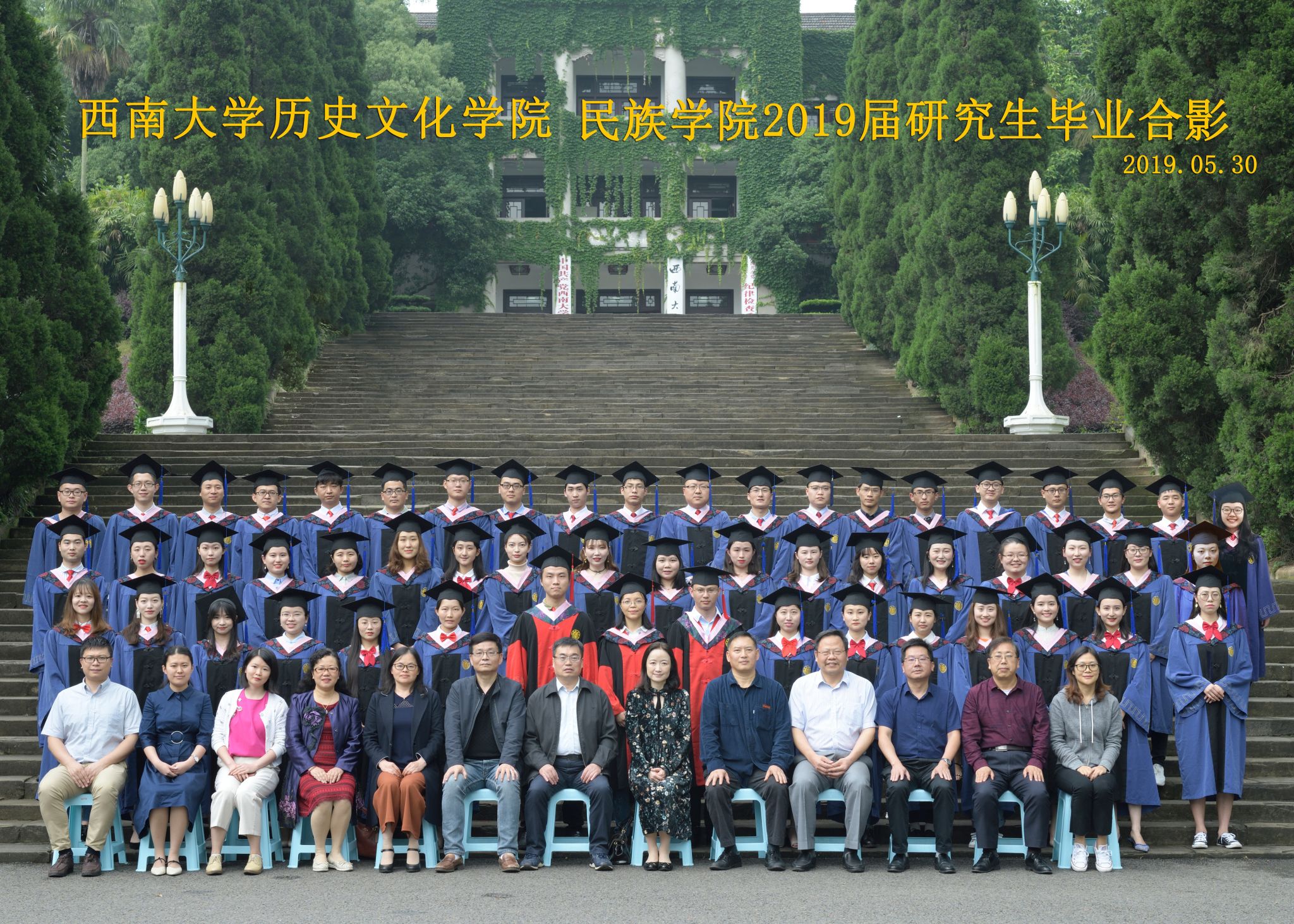 维我西大,滋兰育蕙,弘文兴农,英才济济,拔萃黉宫。含弘光大,学高足以传师道;继往开来,德厚自堪擎苍穹。母院兴教,身先其任:民族预科与民族学,功建中华民族共同体;历史教育与历史学,传承师道中华文明齐兴盛。传统史学,积淀深厚,蔚为大观;专业素养,与时俱进,新枝竞秀。长江文化研究,弘扬中华文明传统,后势可喜;中希文明互鉴,践履民族复兴伟业,前景光明。