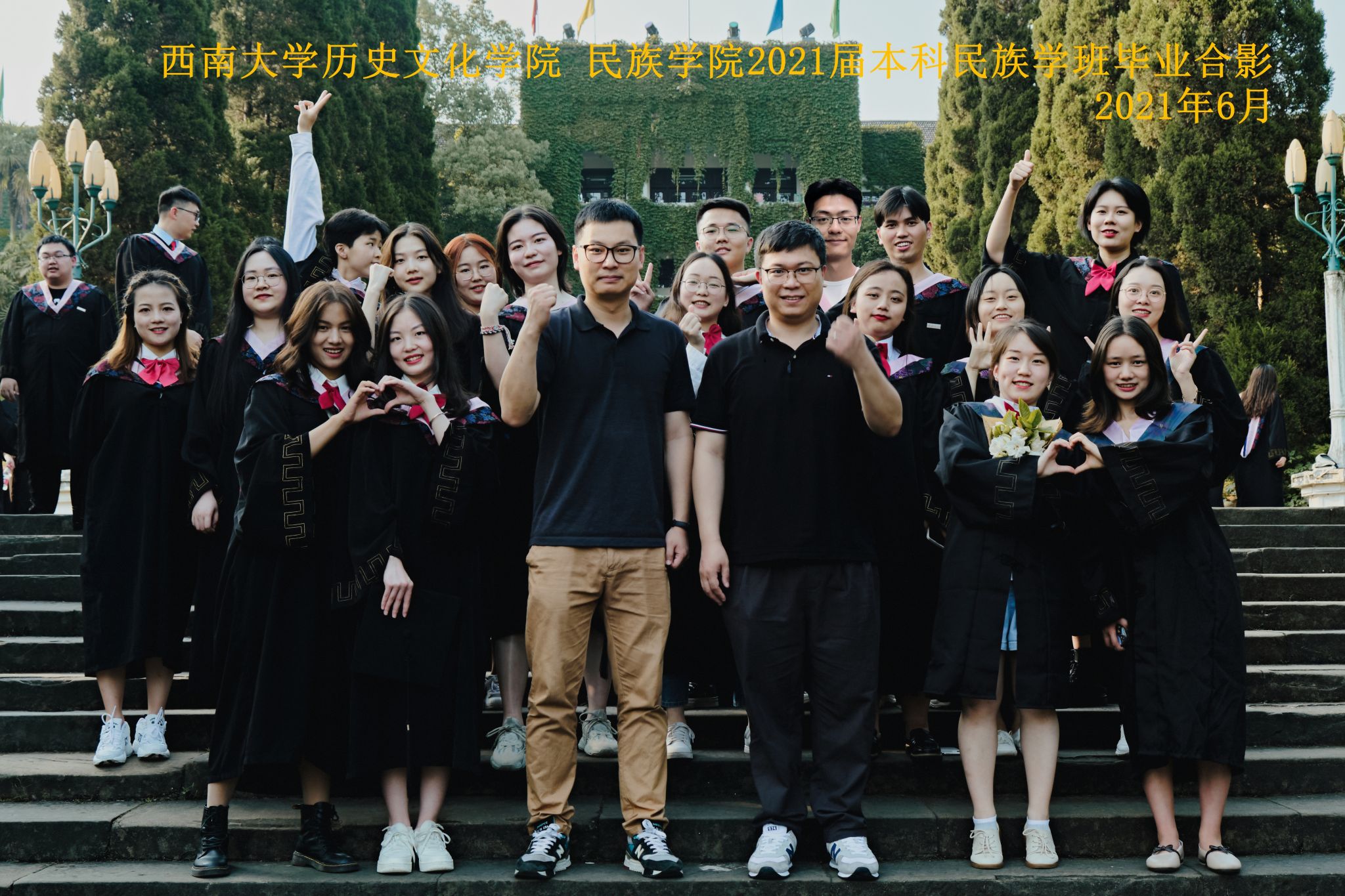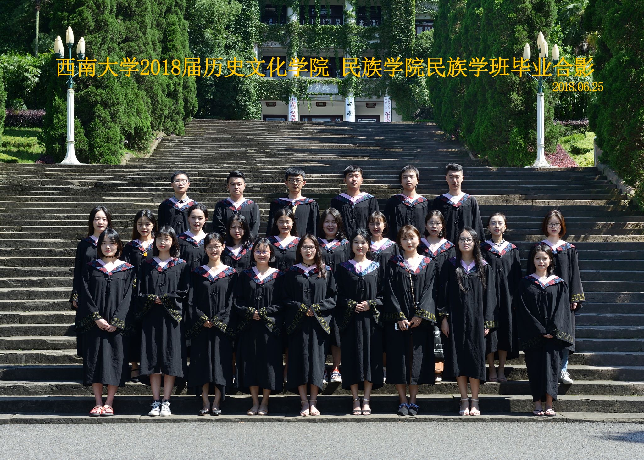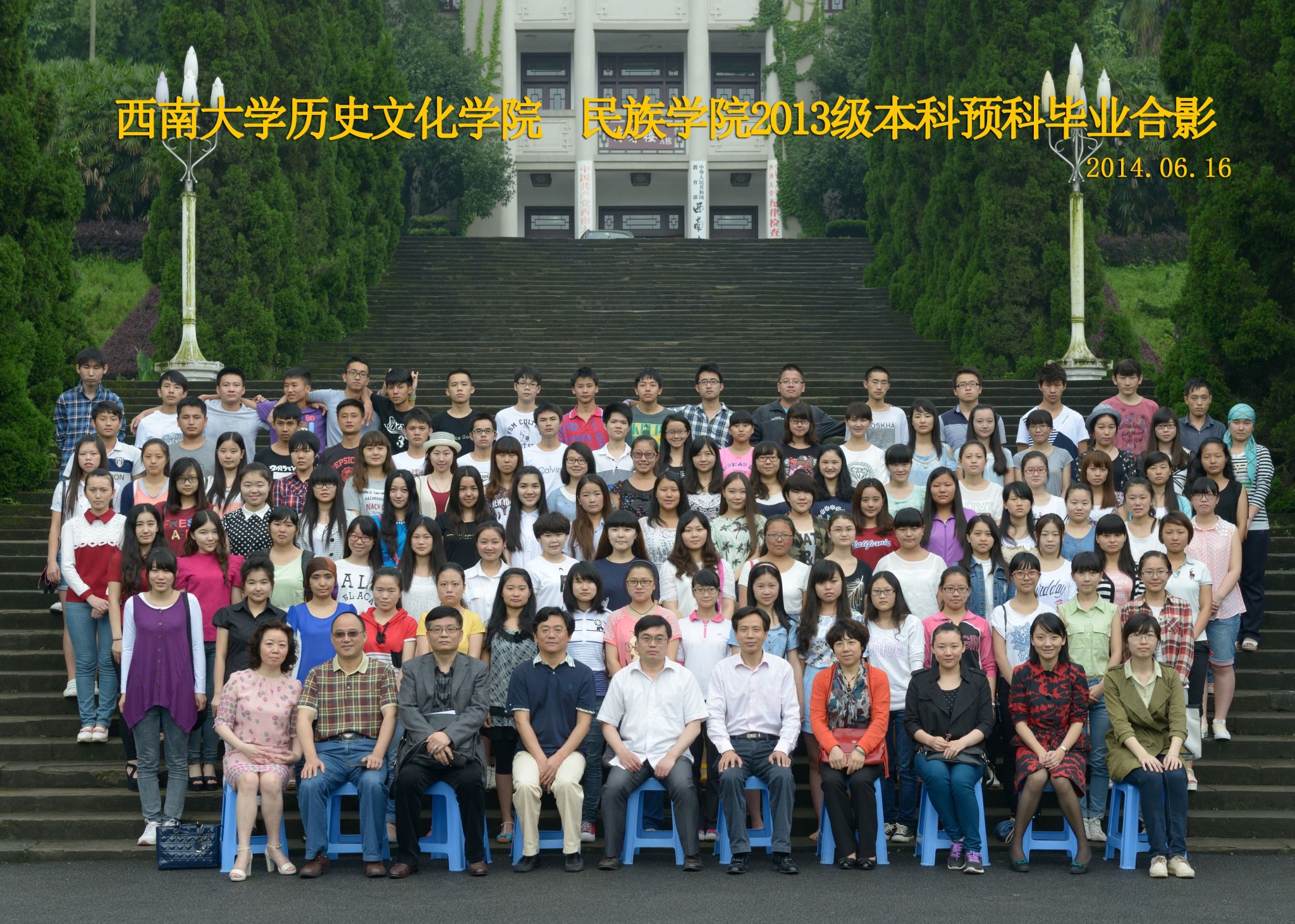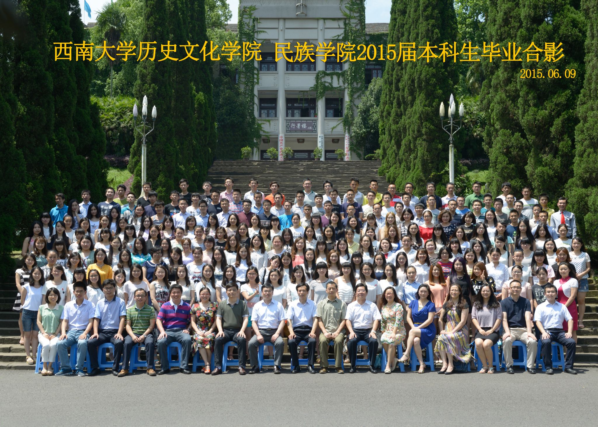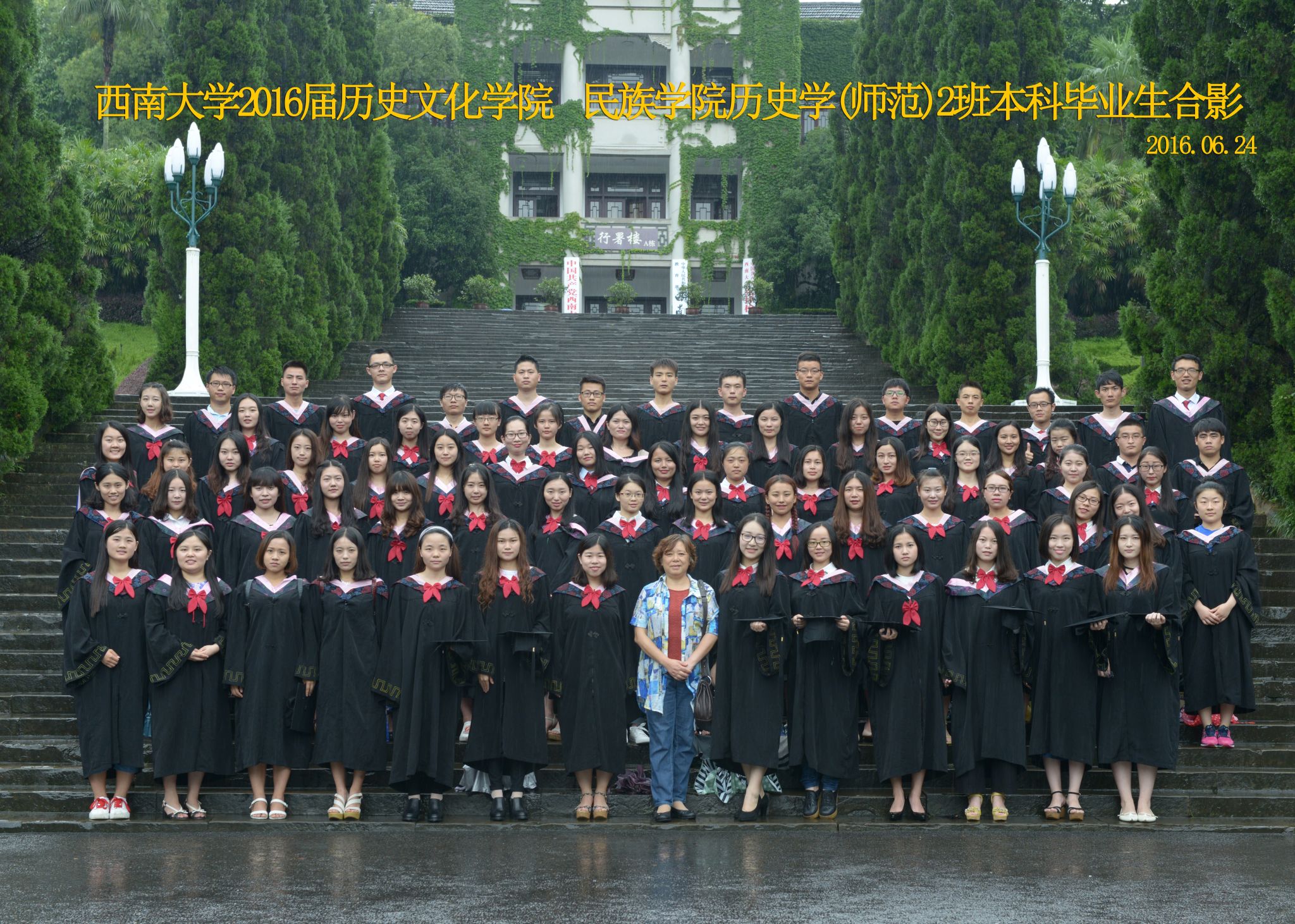 维我西大,滋兰育蕙,弘文兴农,英才济济,拔萃黉宫。含弘光大,学高足以传师道;继往开来,德厚自堪擎苍穹。母院兴教,身先其任:民族预科与民族学,功建中华民族共同体;历史教育与历史学,传承师道中华文明齐兴盛。传统史学,积淀深厚,蔚为大观;专业素养,与时俱进,新枝竞秀。长江文化研究,弘扬中华文明传统,后势可喜;中希文明互鉴,践履民族复兴伟业,前景光明。