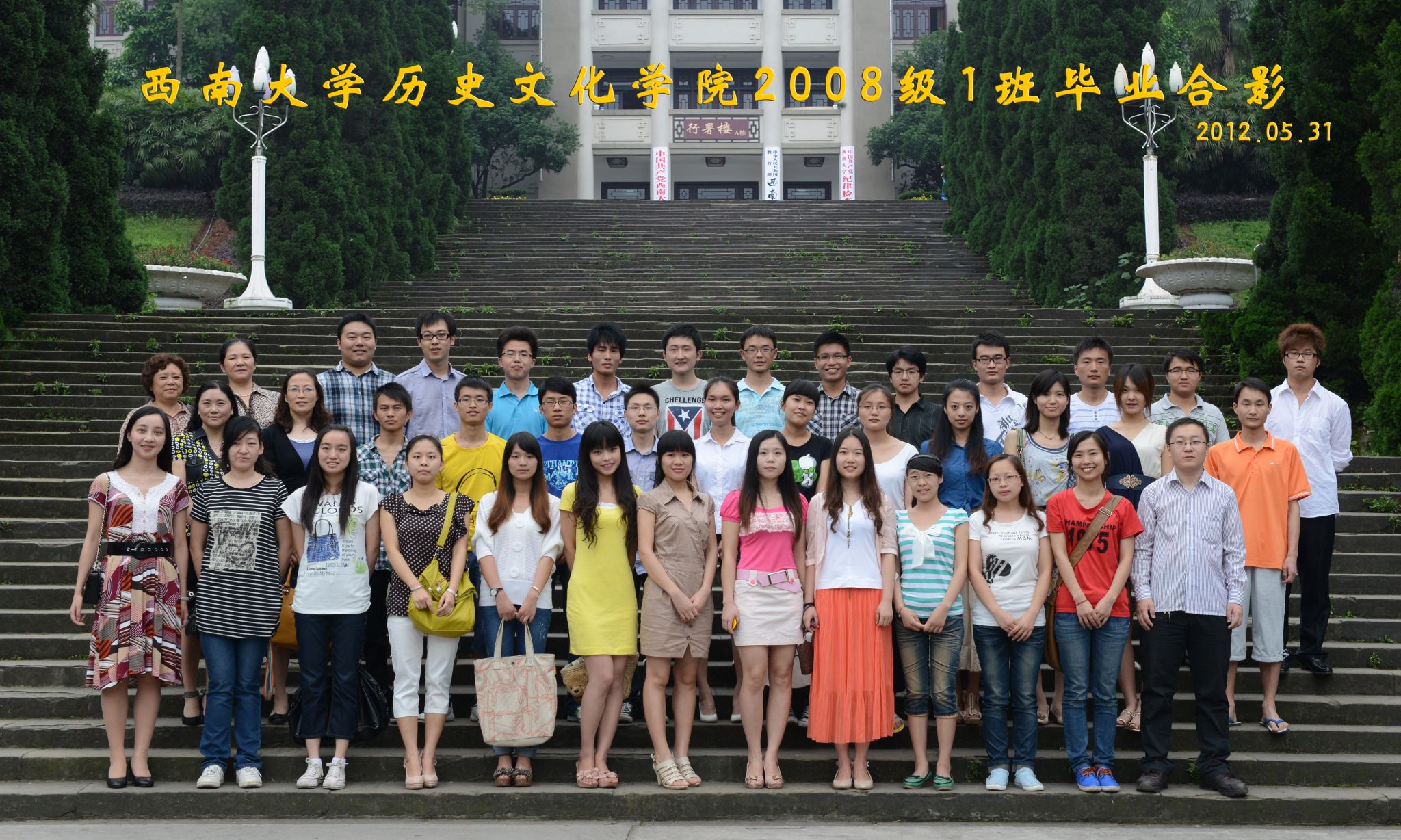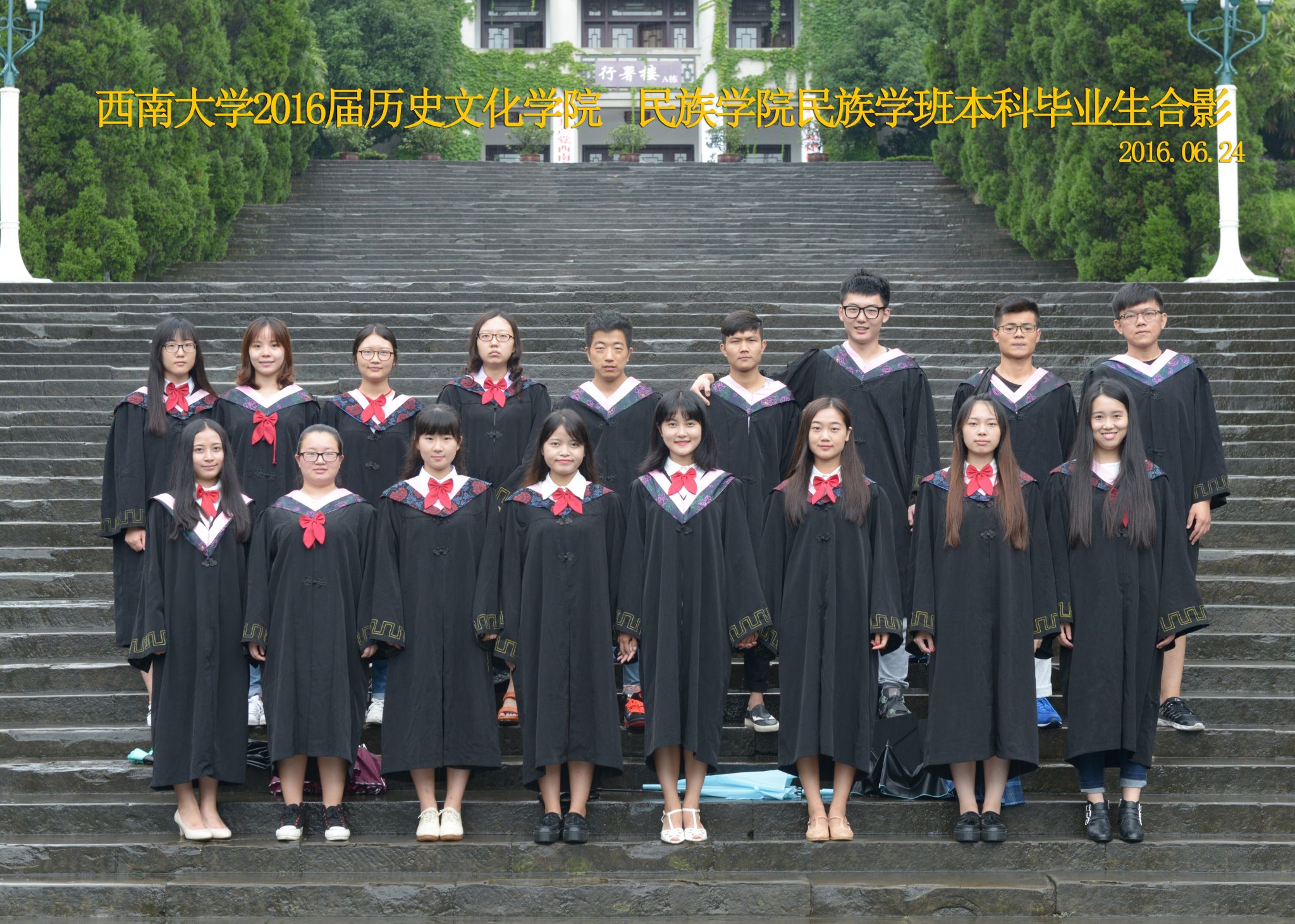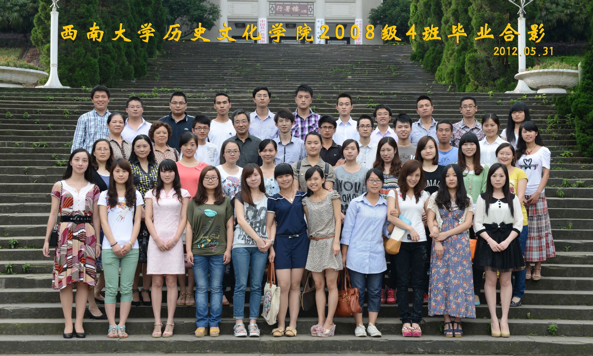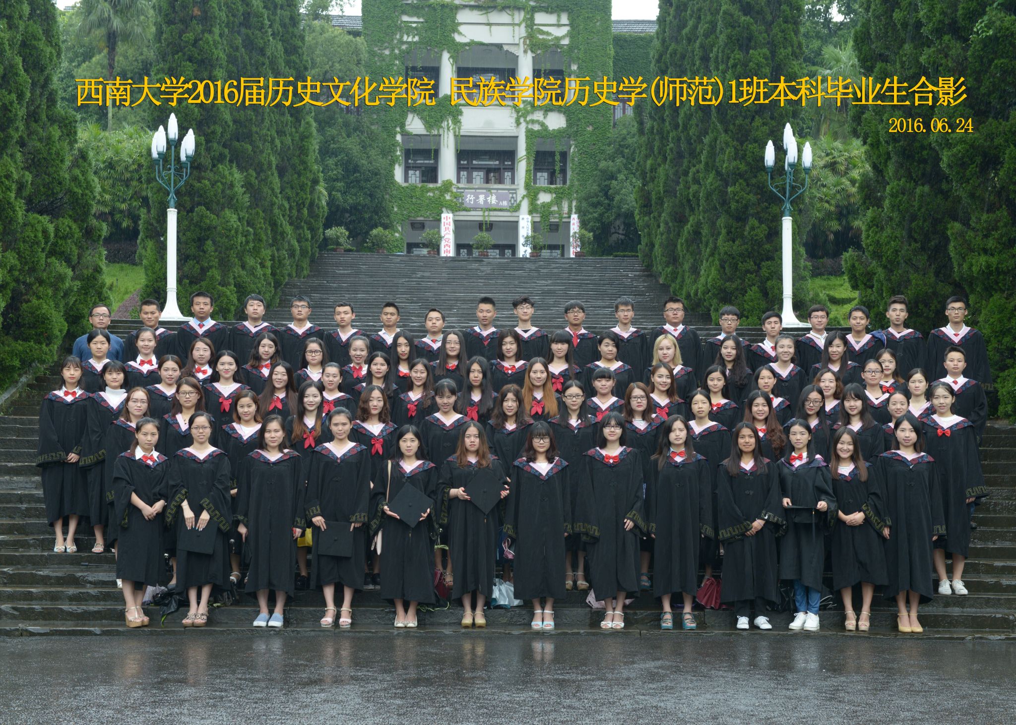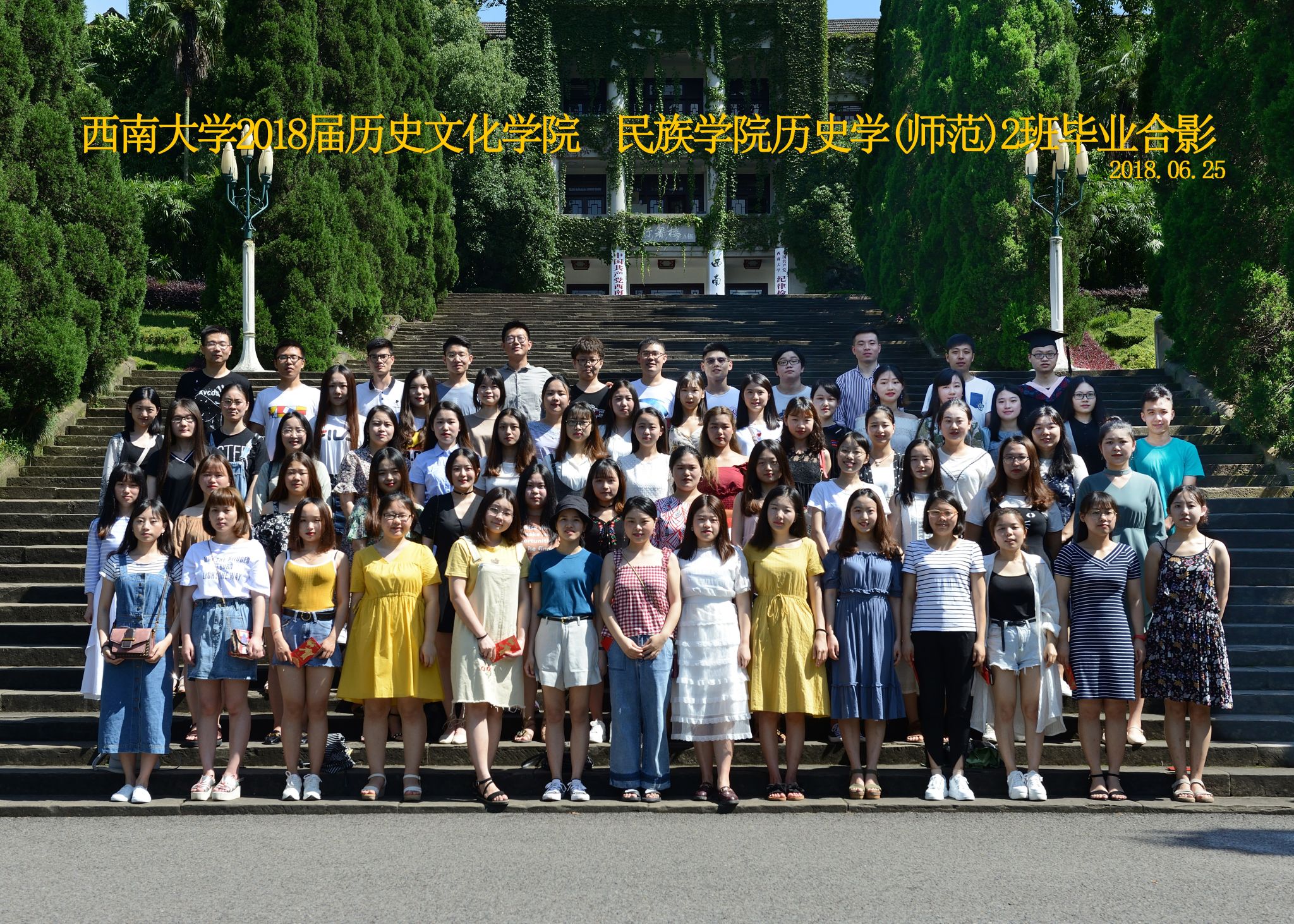 维我西大,滋兰育蕙,弘文兴农,英才济济,拔萃黉宫。含弘光大,学高足以传师道;继往开来,德厚自堪擎苍穹。母院兴教,身先其任:民族预科与民族学,功建中华民族共同体;历史教育与历史学,传承师道中华文明齐兴盛。传统史学,积淀深厚,蔚为大观;专业素养,与时俱进,新枝竞秀。长江文化研究,弘扬中华文明传统,后势可喜;中希文明互鉴,践履民族复兴伟业,前景光明。