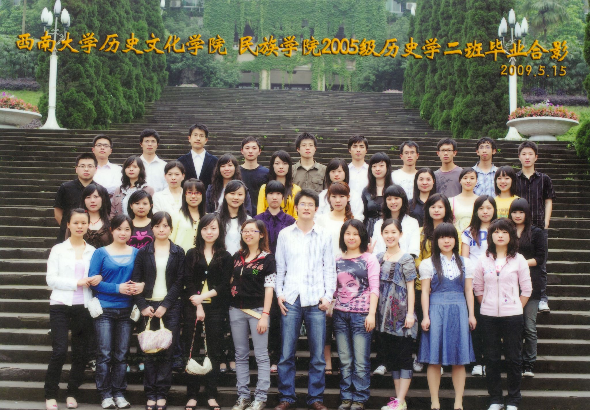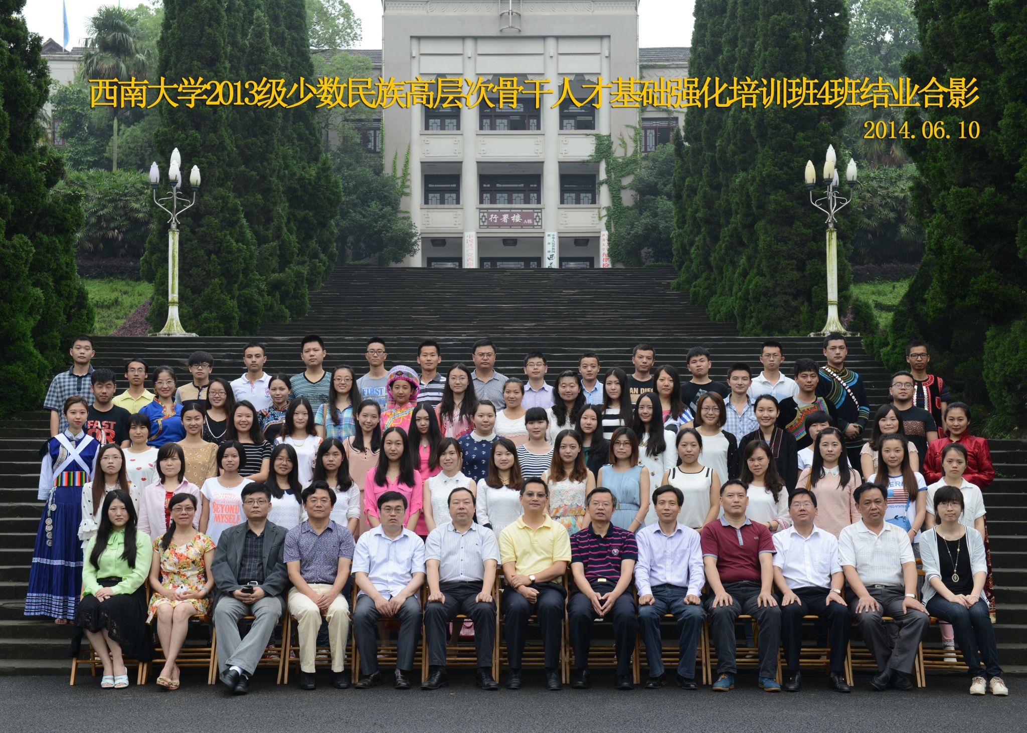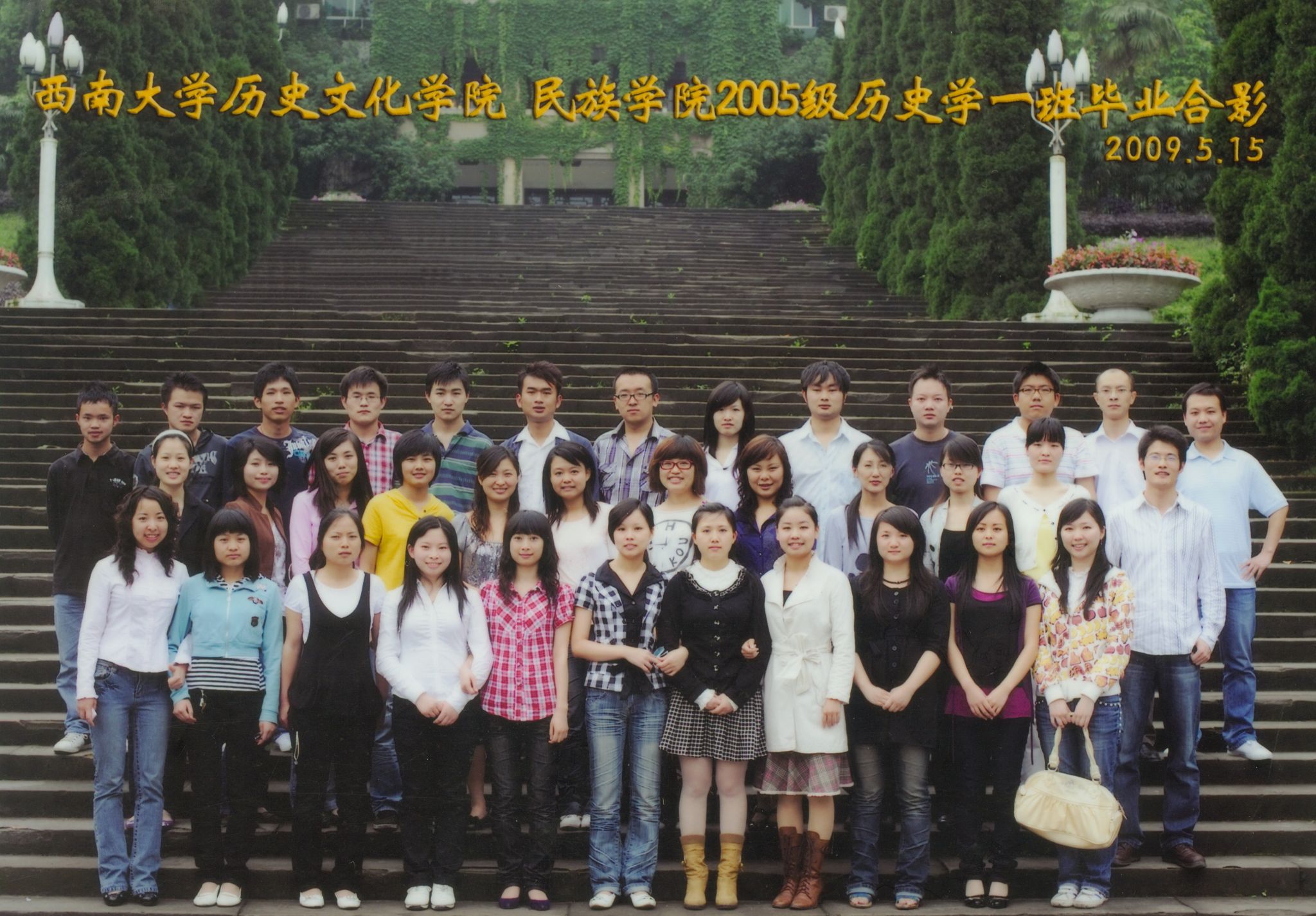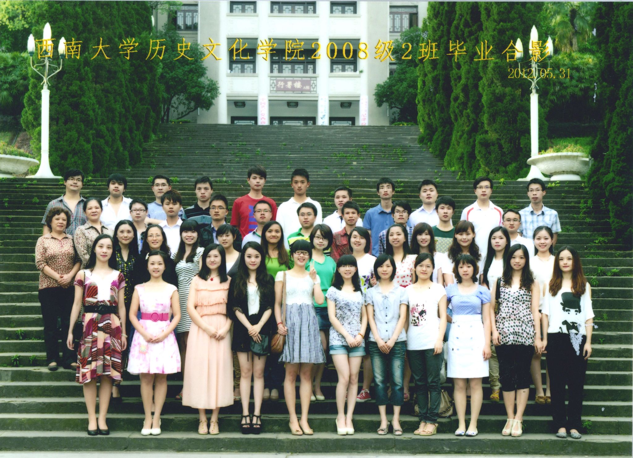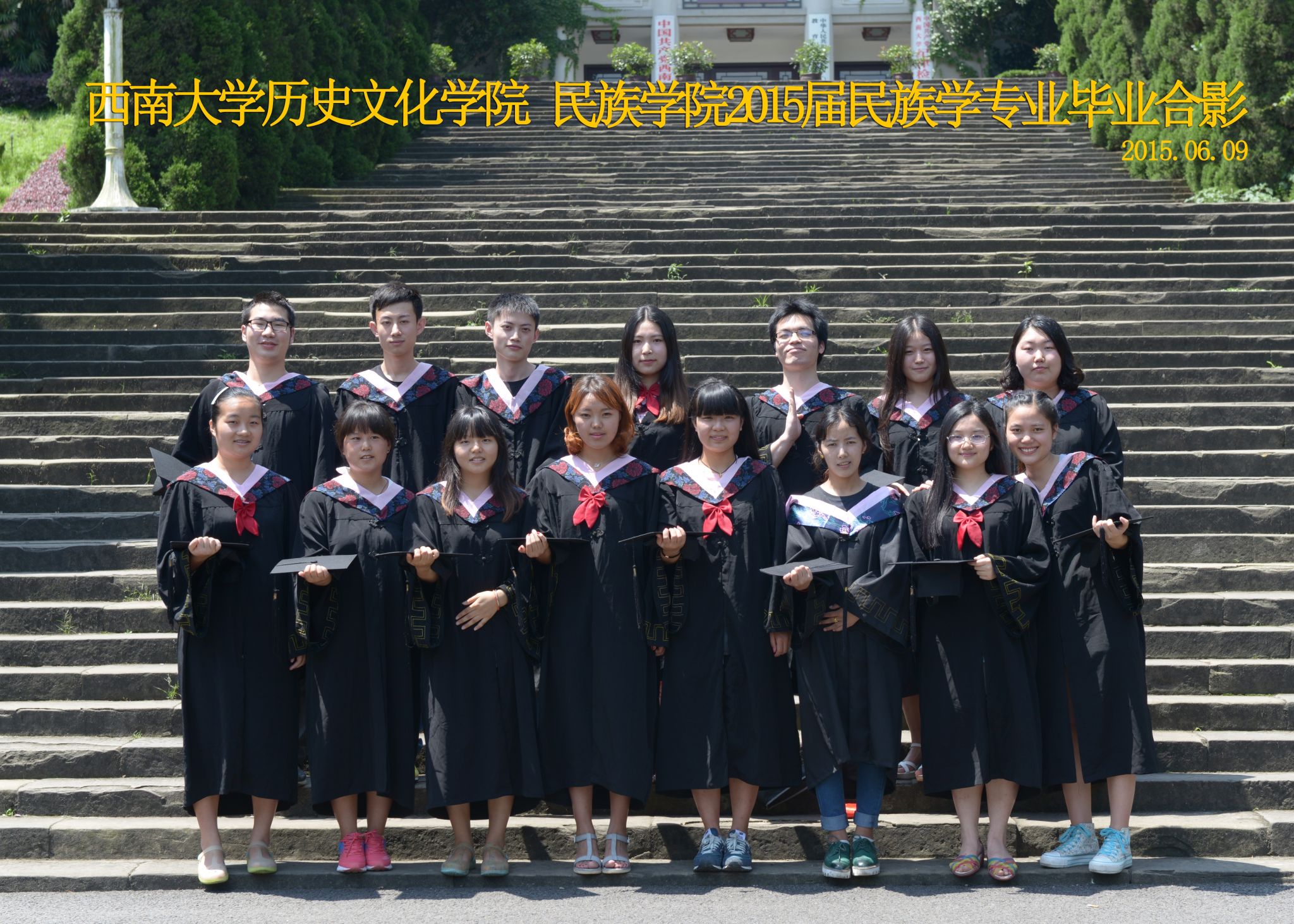 维我西大,滋兰育蕙,弘文兴农,英才济济,拔萃黉宫。含弘光大,学高足以传师道;继往开来,德厚自堪擎苍穹。母院兴教,身先其任:民族预科与民族学,功建中华民族共同体;历史教育与历史学,传承师道中华文明齐兴盛。传统史学,积淀深厚,蔚为大观;专业素养,与时俱进,新枝竞秀。长江文化研究,弘扬中华文明传统,后势可喜;中希文明互鉴,践履民族复兴伟业,前景光明。