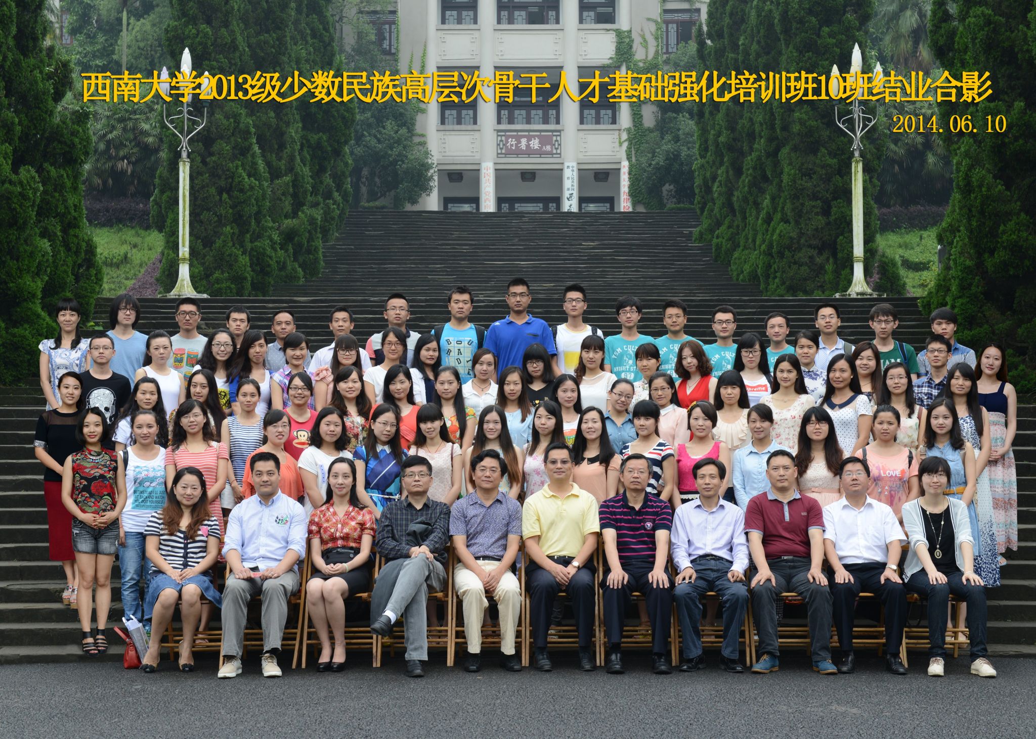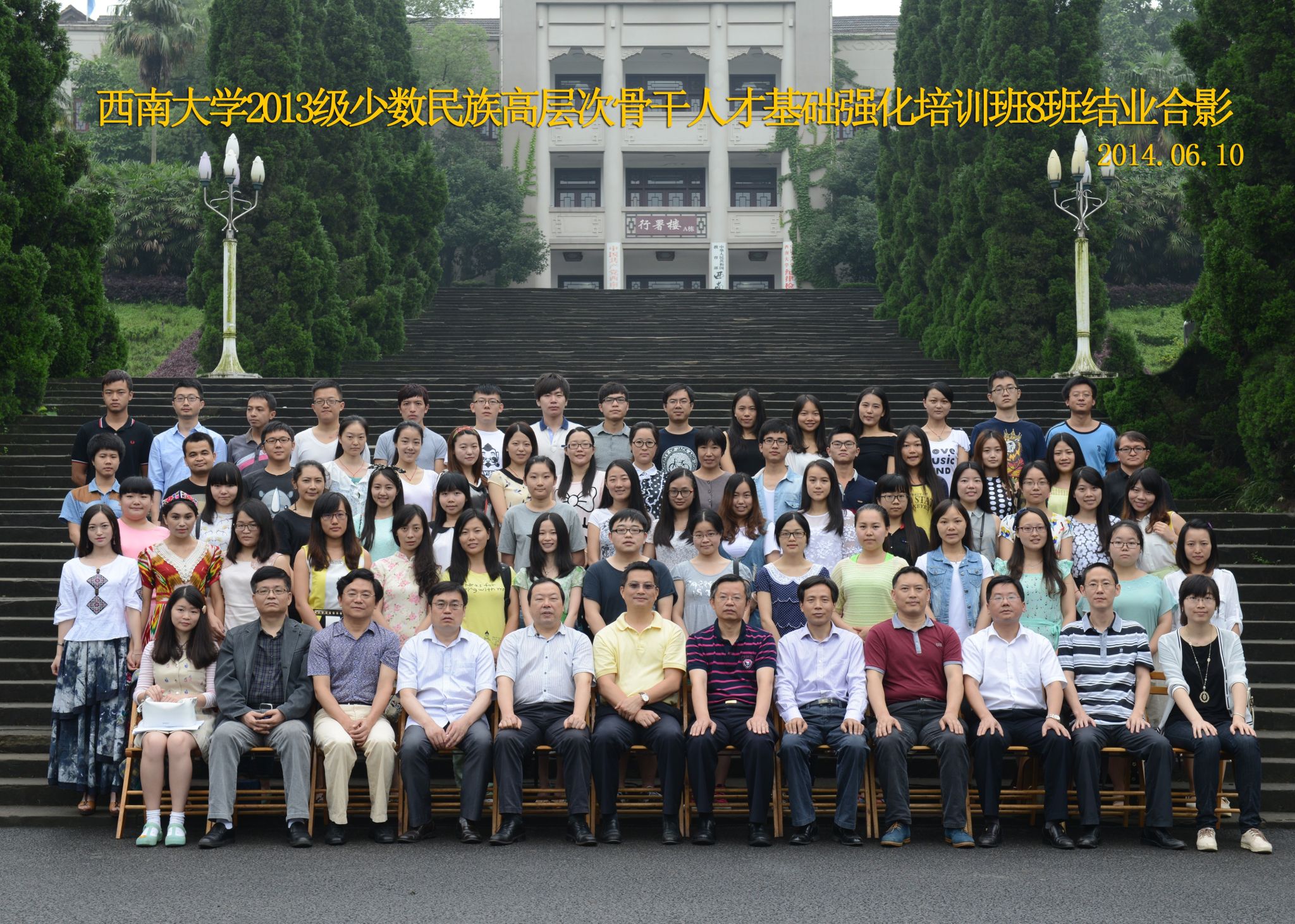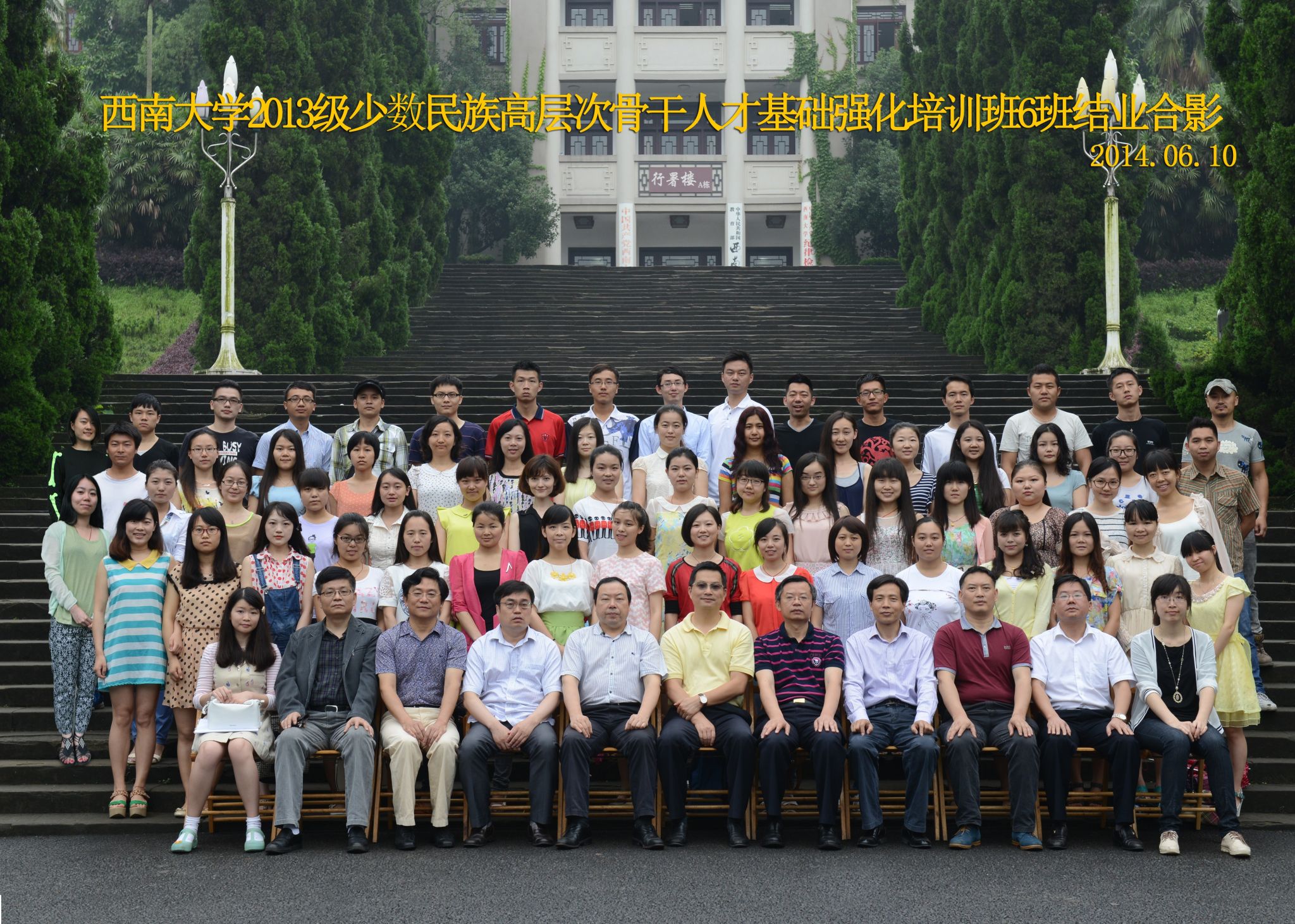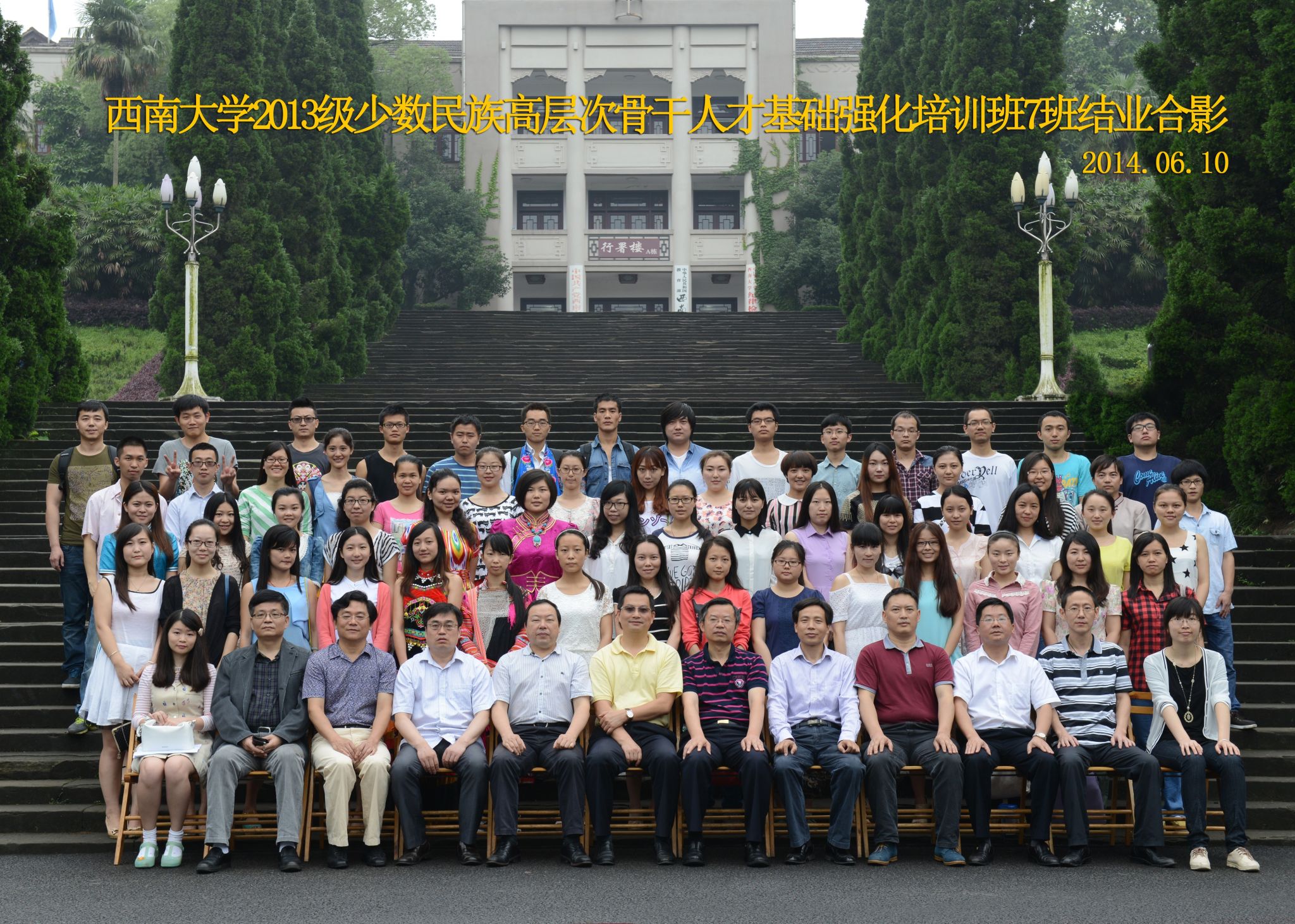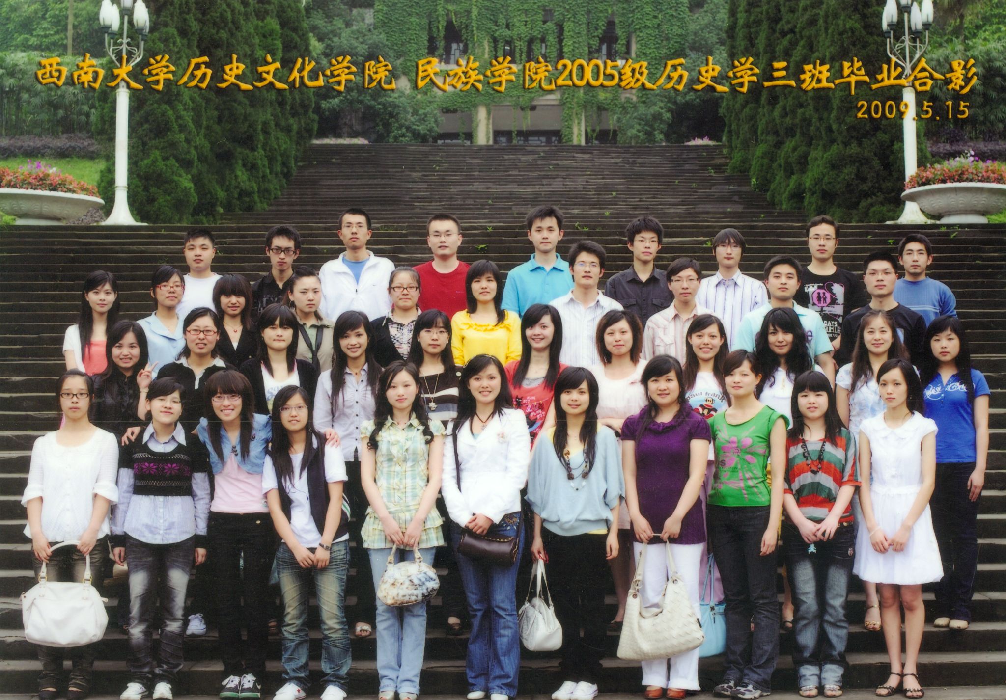 维我西大,滋兰育蕙,弘文兴农,英才济济,拔萃黉宫。含弘光大,学高足以传师道;继往开来,德厚自堪擎苍穹。母院兴教,身先其任:民族预科与民族学,功建中华民族共同体;历史教育与历史学,传承师道中华文明齐兴盛。传统史学,积淀深厚,蔚为大观;专业素养,与时俱进,新枝竞秀。长江文化研究,弘扬中华文明传统,后势可喜;中希文明互鉴,践履民族复兴伟业,前景光明。